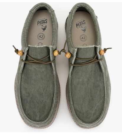 Chaussure toile homme ultra-légère Semelle épaisse Lacet élastiqué Chaussant large PITAS Coloris vert kaki ou bleu