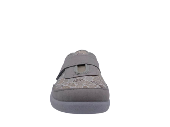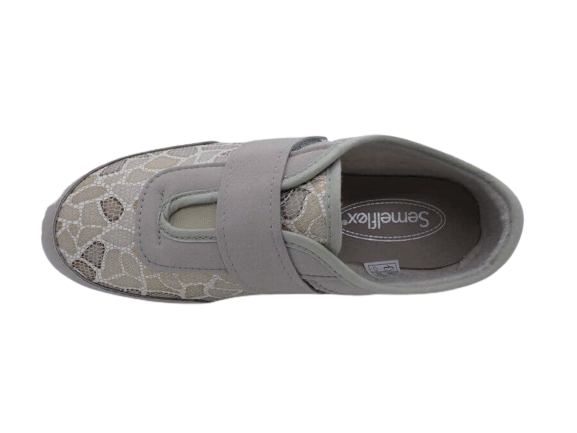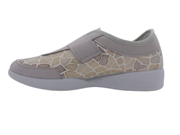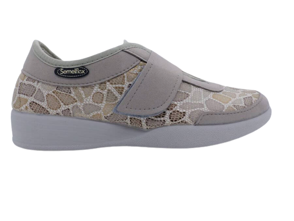 A mi-chemin entre le derby et le chausson ces chaussures à velcro offrent de nombreux avantages en termes de facilité d’utilisation, d’ajustement personnalisé, de confort et de sécurité. Si vous cherchez des chaussures pratiques et confortables pour une utilisation quotidienne, ce modèle SEMELFLEX est fait pour vous. La semelle compensé offre un parfait équilibre et une bonne stabilité en répartissant le poids du corps uniformément sur toute la semelle. Le dessus est composé d’empiècements beiges façon mosaïque sur les côtés et de tissus épais gris pour un bon maintien. La doublure en éponge réduit les frottements et les irritations. Ces chaussures conviennent à une grande variété d’activités, car elles peuvent être portées dans de nombreuses situations différentes, pour les sorties ou tout simplement pour rester chez soi.