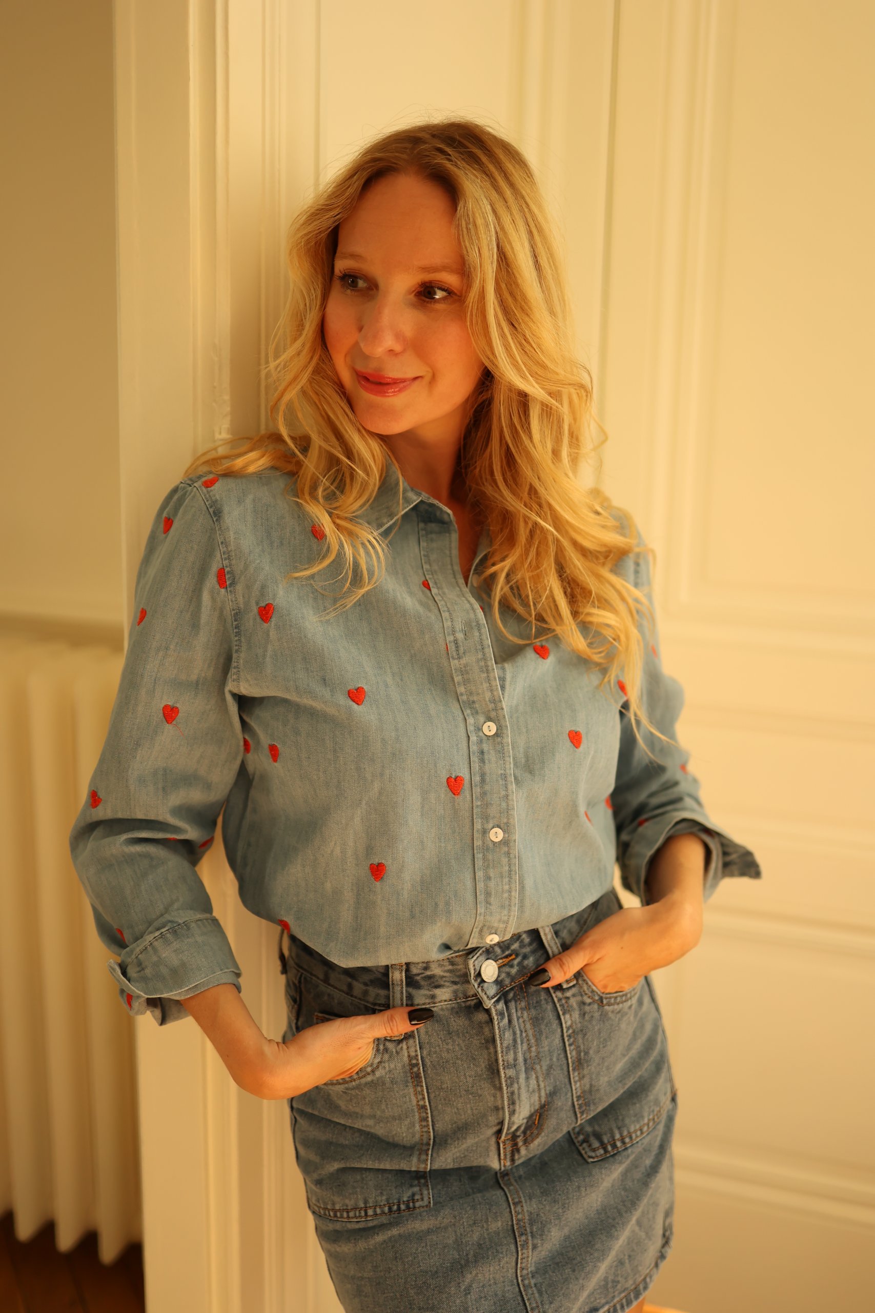 Découvrez la chemise en jean brodée à petits coeurs beaucoup trop craquante !