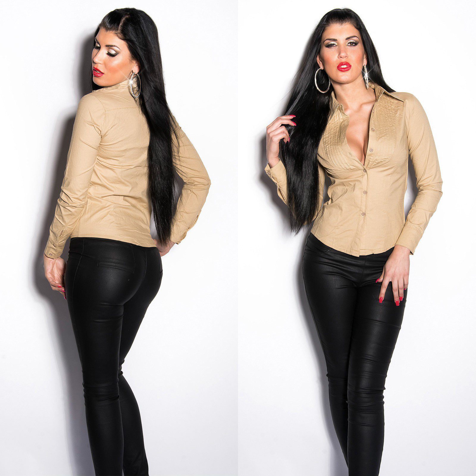 Chemise femme fashion sexy cintrée manches longues couleur beige