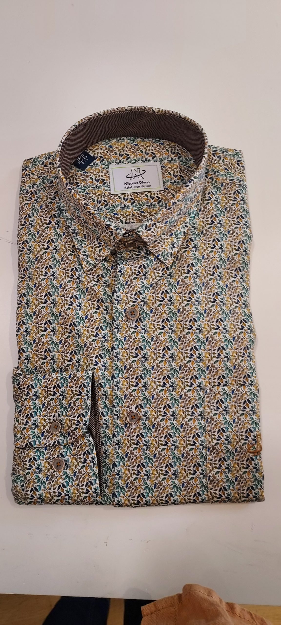 MOTIFS FEUILLES VERTES ET OCRES SUR FOND BLANC