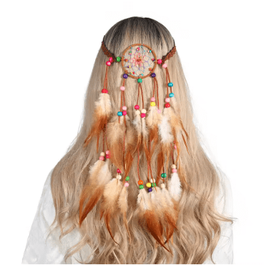 Coiffe Indienne Attrape-rêve à Plumes Jaune