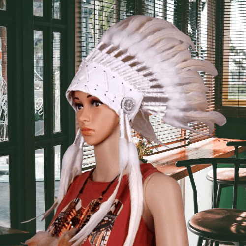 Cette somptueuse Coiffe Autochtone est à votre portée, confectionnée avec de vraies plumes et élaborée manuellement avec une attention précise aux détails. Son aspect modulable vous assure une adaptation parfaite pour un port des plus agréables.