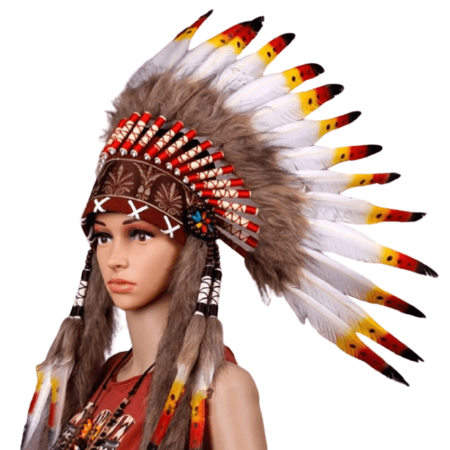 Incarnerez-vous la Prestige d’un Leader Amérindien avec notre Somptueuse Coiffe Indienne aux Trois Couleurs ?