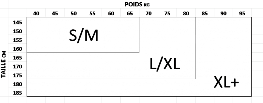 Conseil taille : se référer au tableau de tailles ou prenez soigneusement vos mesures directement sur le corps et sans serrer. Si vous hésitez entre 2 tailles, choisissez toujours la plus grande.