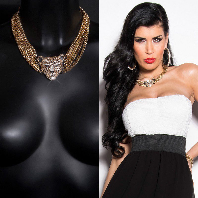 Collier à la mode femme fashion tigre et strass LINE couleur or
