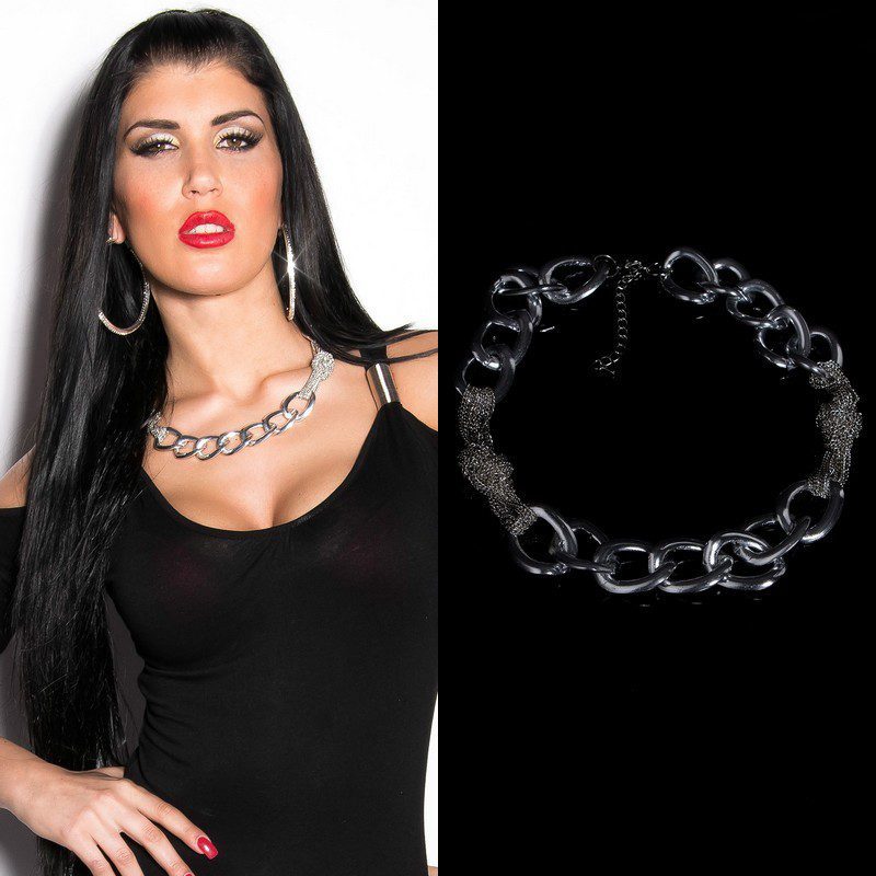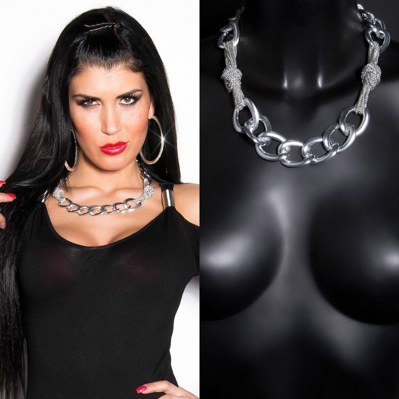 Collier double chaînes et chaînettes nouées EVA couleur argent