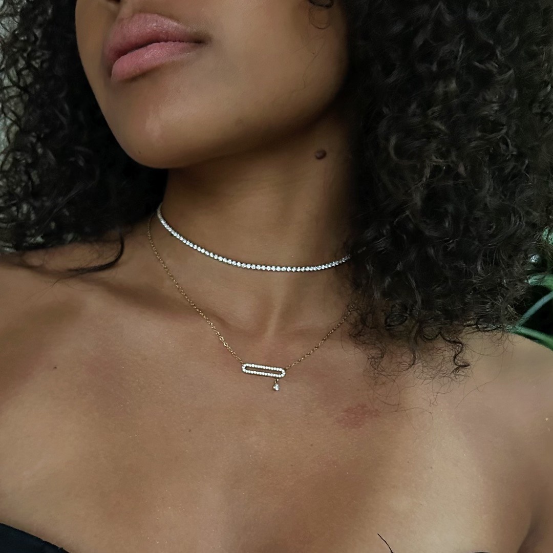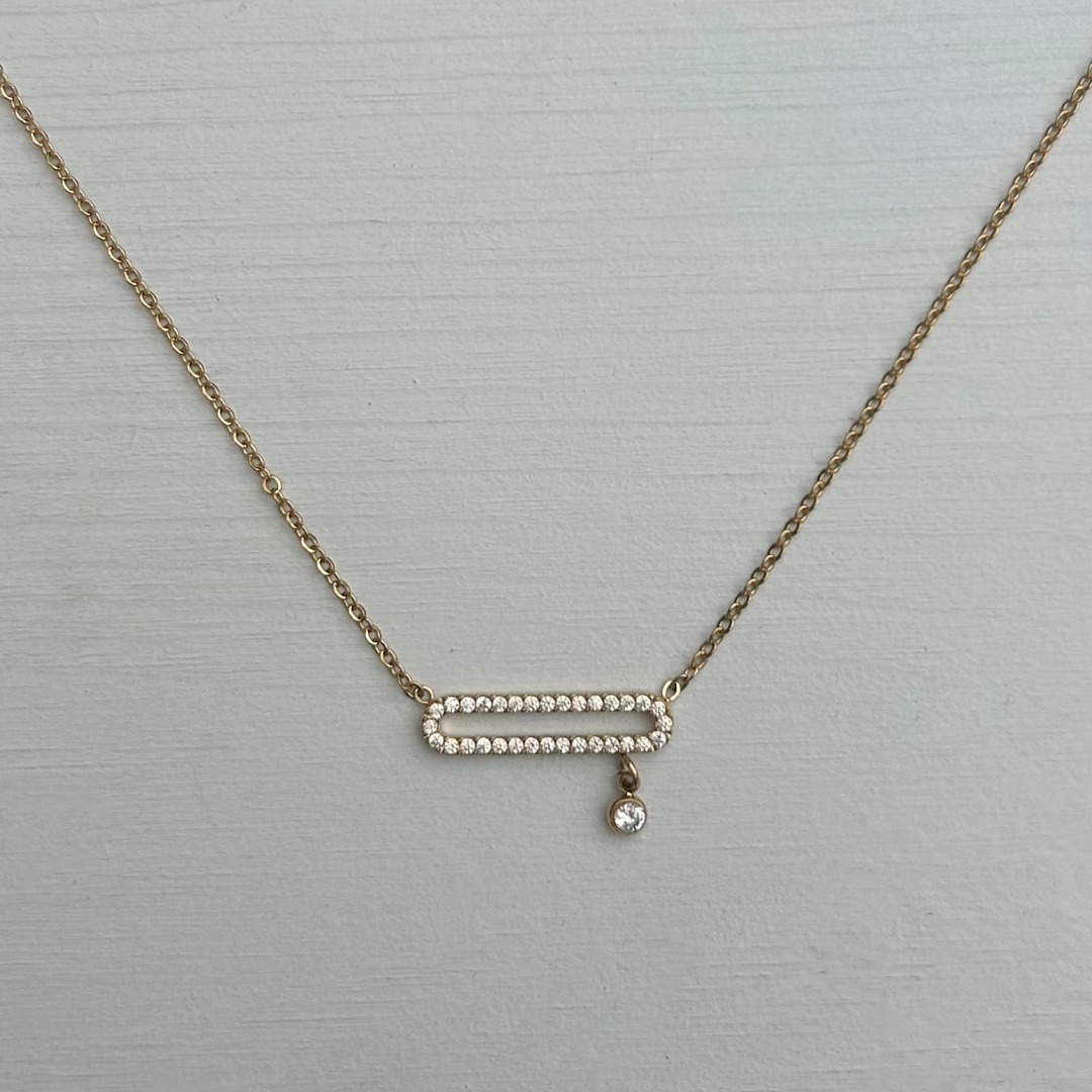 Collier en acier inoxydable avec trombone géométrique et un petit strass pendant !