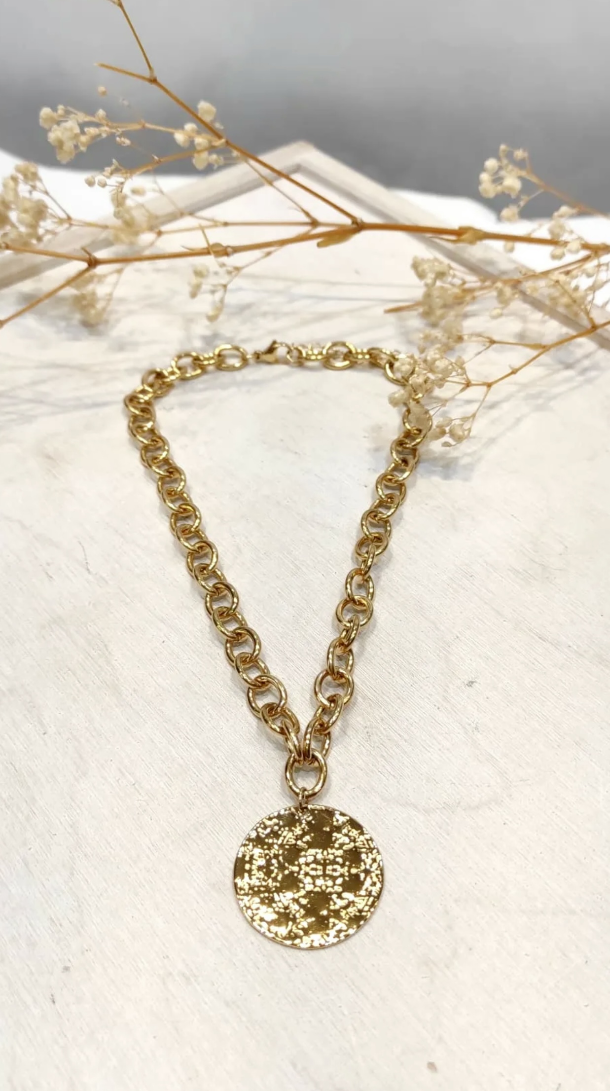 Collier chaine avec médaillon martelé qui fait tout son charme !