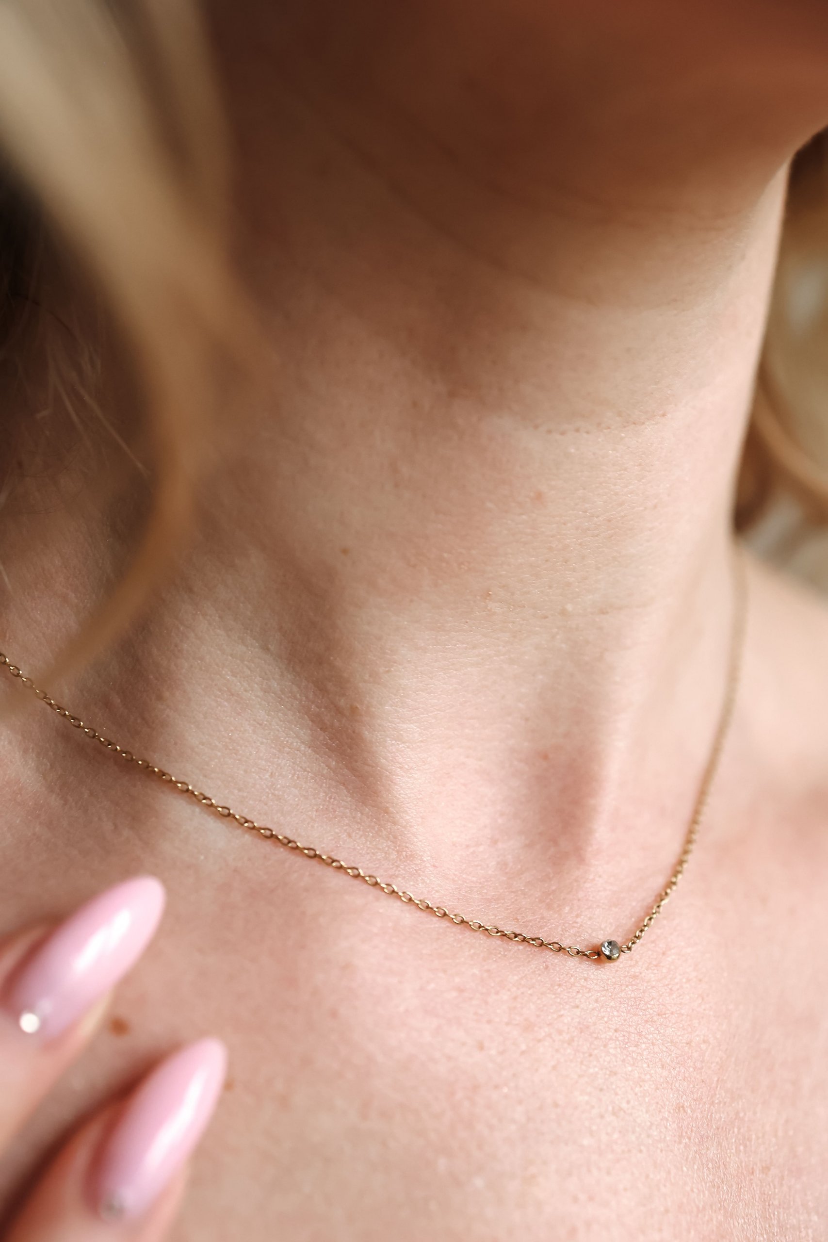 Collier en acier inoxydable doré et petit brillant. Parfait pour ne plus jamais le quitter !