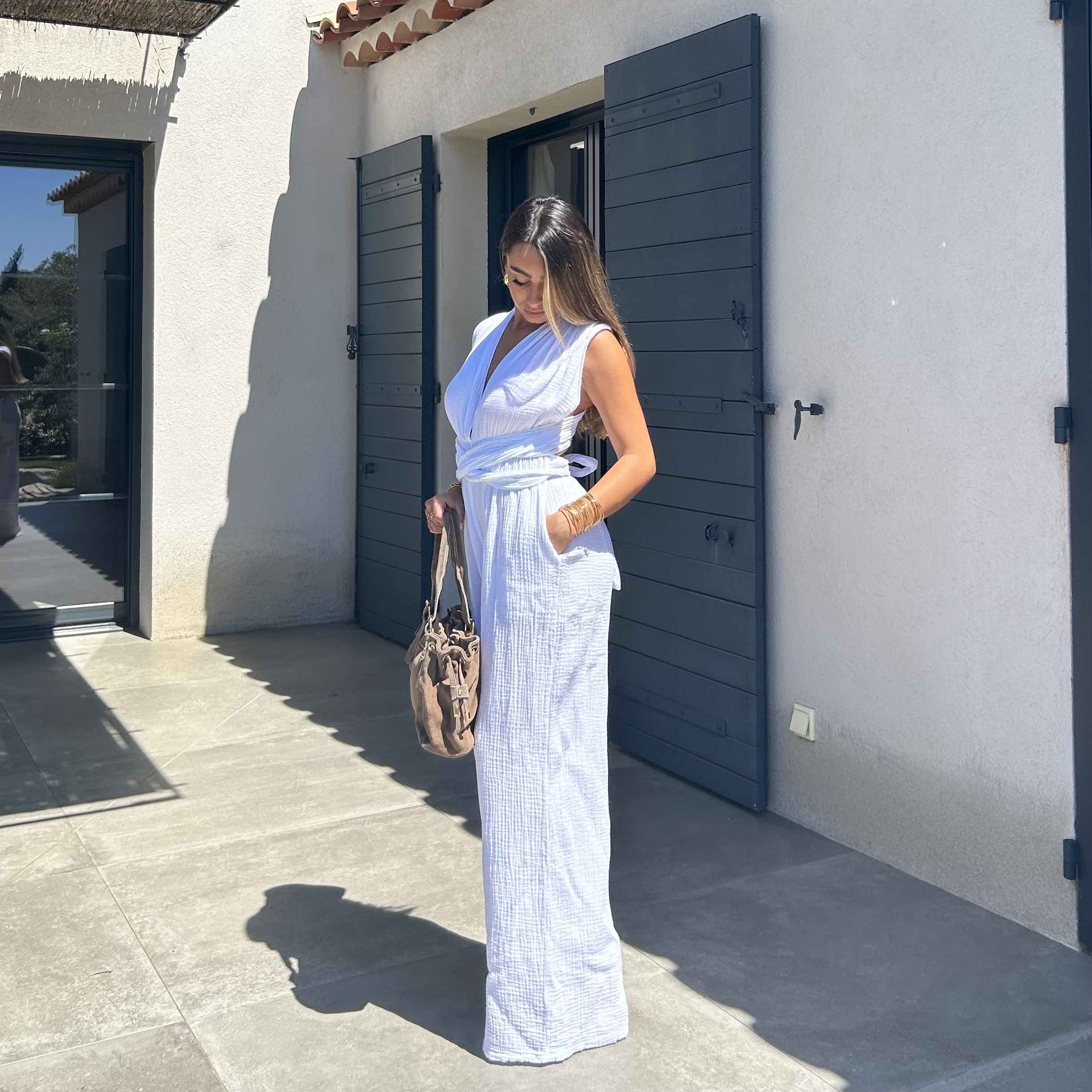 Découvrez cette combinaison pantalon avec dos-nu qui rend votre look élégant & classe pour la journée comme en soirée !