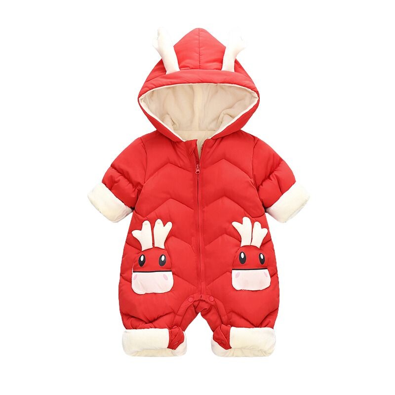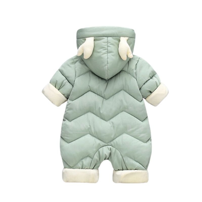 Faites le choix de la chaleur, du confort et du style pour votre bébé avec notre combinaison de ski bébé intégrale. Cette pièce mignonne est disponible en trois couleurs vives : vert, bleu et rouge. Elle est agrémentée de petites cornes sur la capuche et de personnages adorables sur les poches, conférant à votre petit un look unique et craquant sur les pistes de ski.