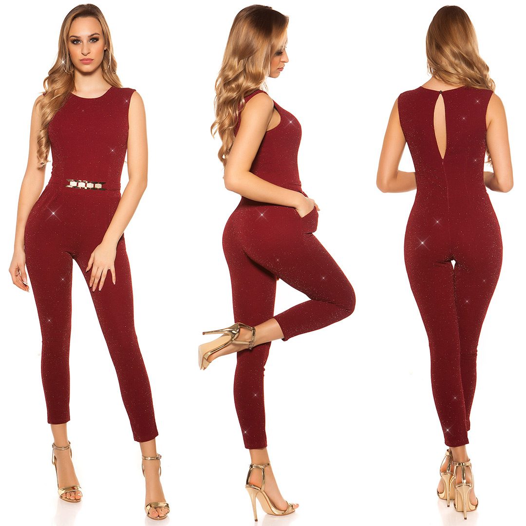 Combinaison pantalon femme élégante LEELOO couleur bordeaux brillant