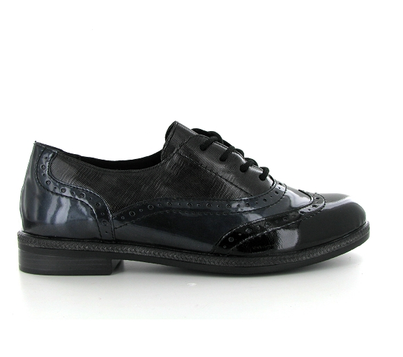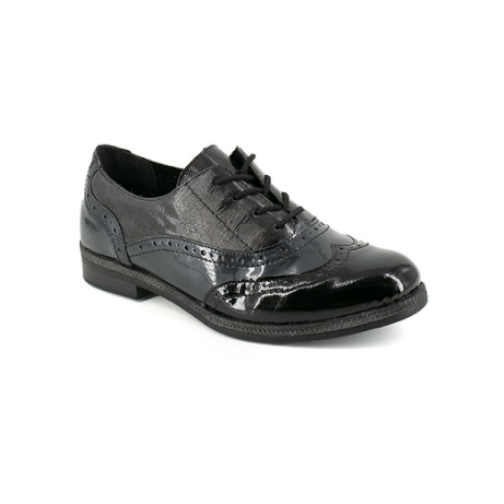 Derbies cuir femme à lacet talon plat REMONTE D2621 vernis noir
