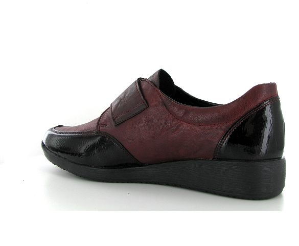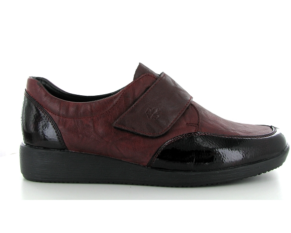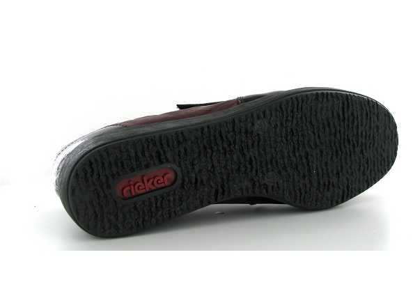 Derbies femme Velcro Talon compensé Dessus cuir RIEKER 44058-35 coloris rouge / bordeaux