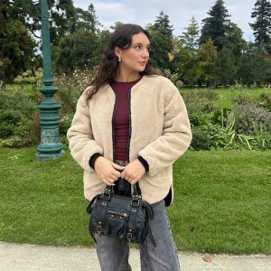 Doudoune mi-longue avec capuche amovible. Double fermeture zippée. Détail simili noir au niveau des poches.