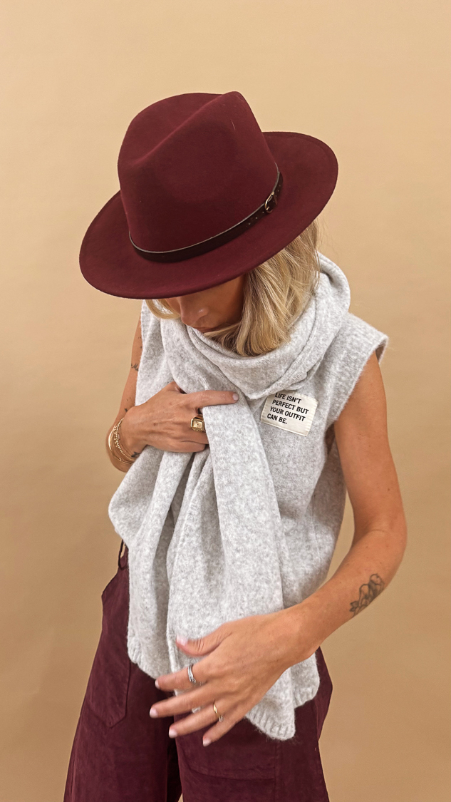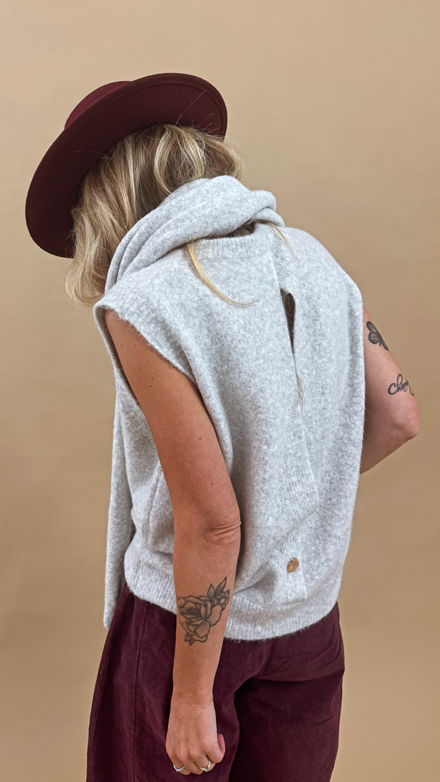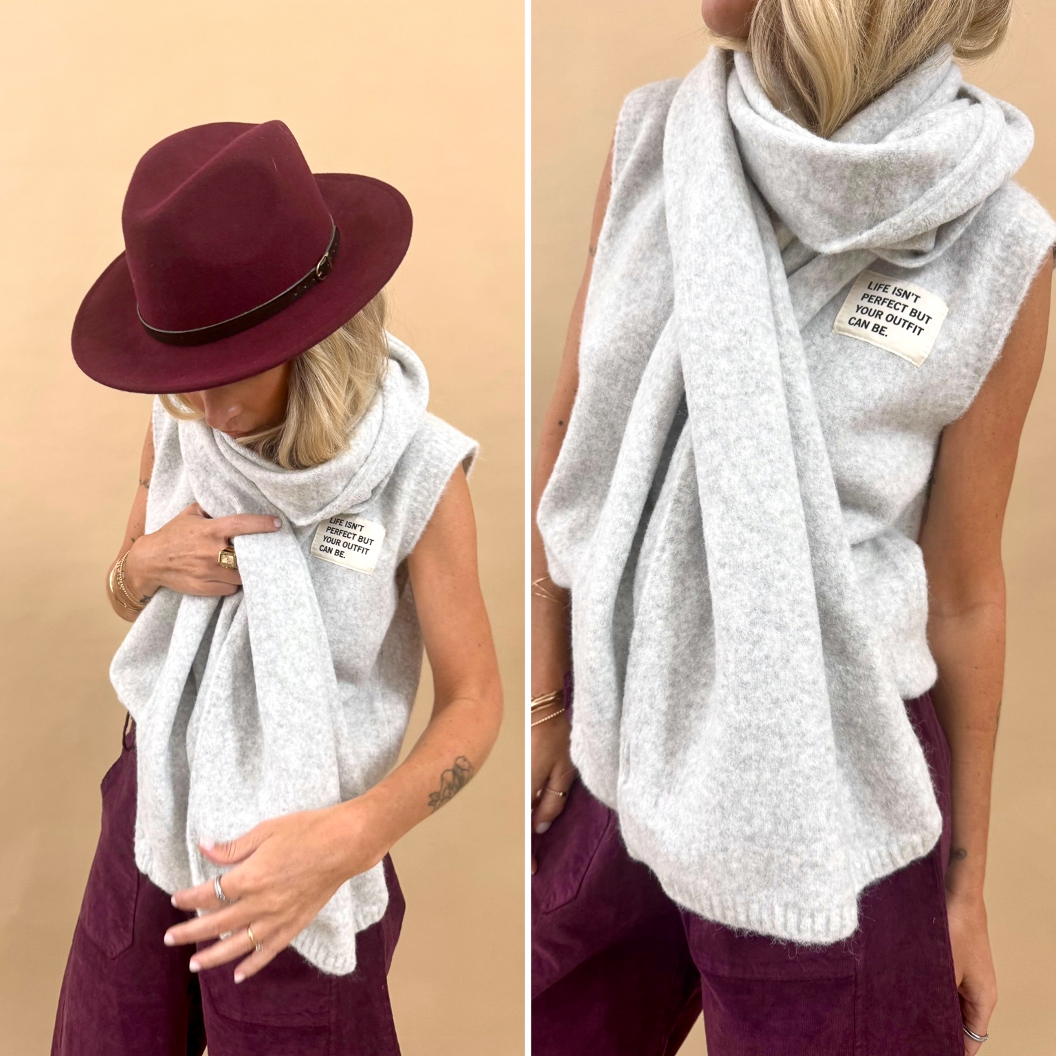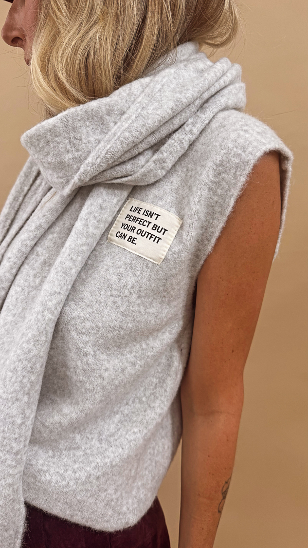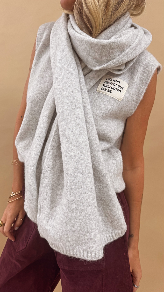 L’écharpe grise Clara pour un automne au chaud… s’accordera parfaitement avec notre pull gris col dentelle!