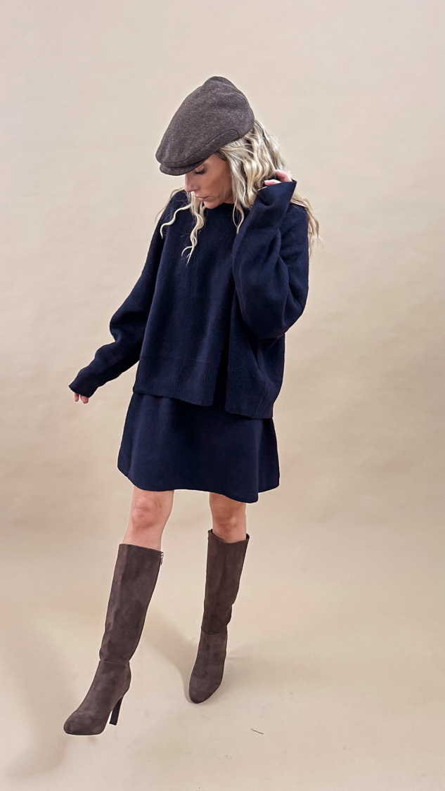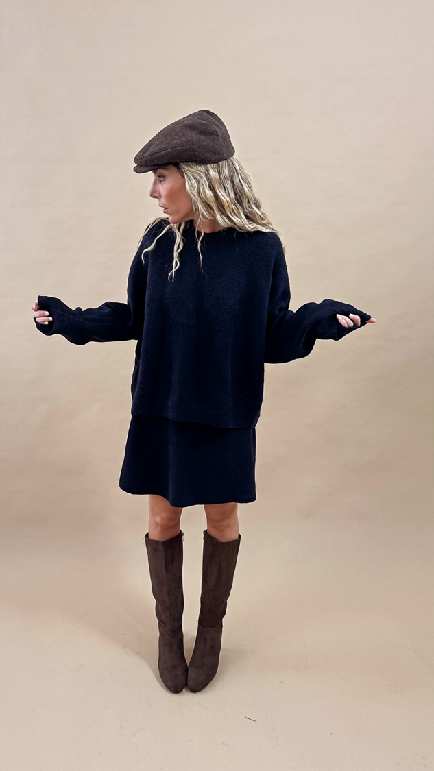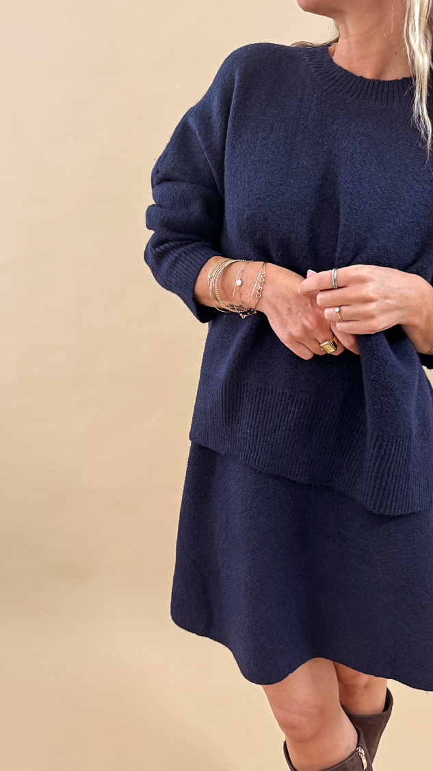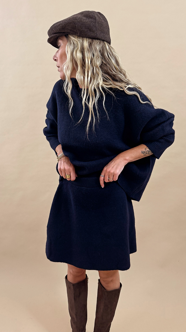 Ensemble jupe et pull bleu marine