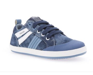 Baskets garçon de la marque GEOX en toile bleu jeans ou bleu et orange. Semelle intérieure amovible et respirante en cuir, semelle extérieure en caoutchouc. La languette est pourvue d’élastiques sur les côtés afin de pouvoir porter ces chaussures sans lacets. Bout recouvert de caoutchouc pour une meilleure résistance à l’usure.