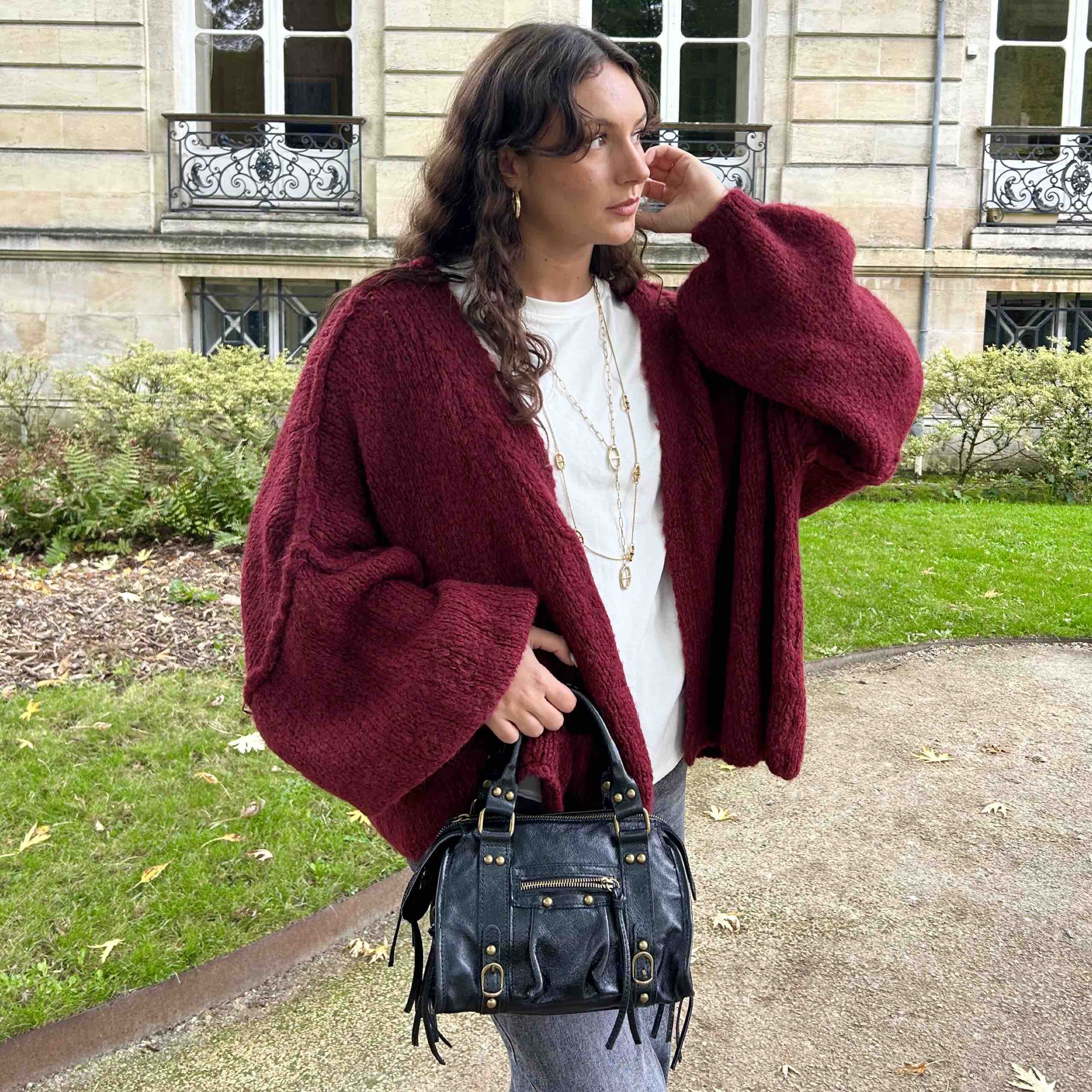 - Gilet oversize manches longues bordeaux