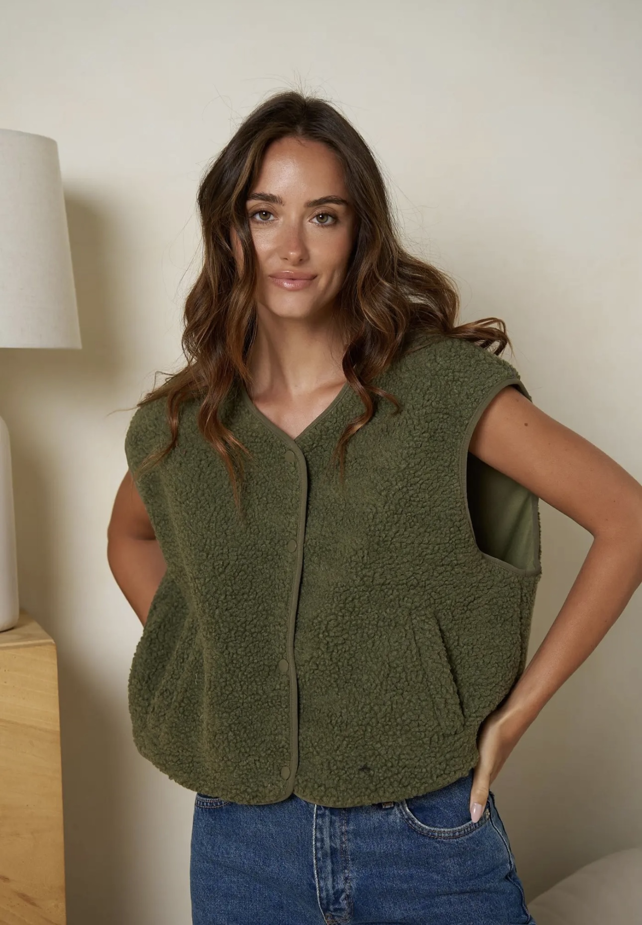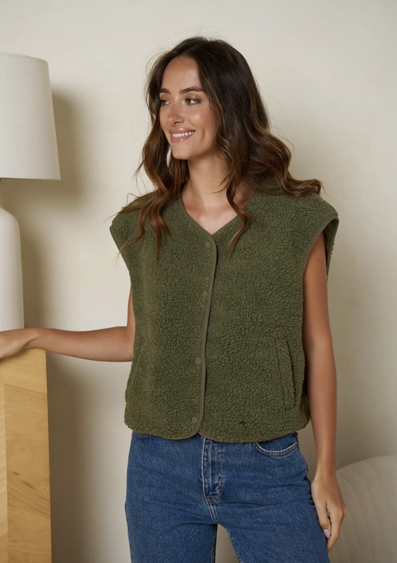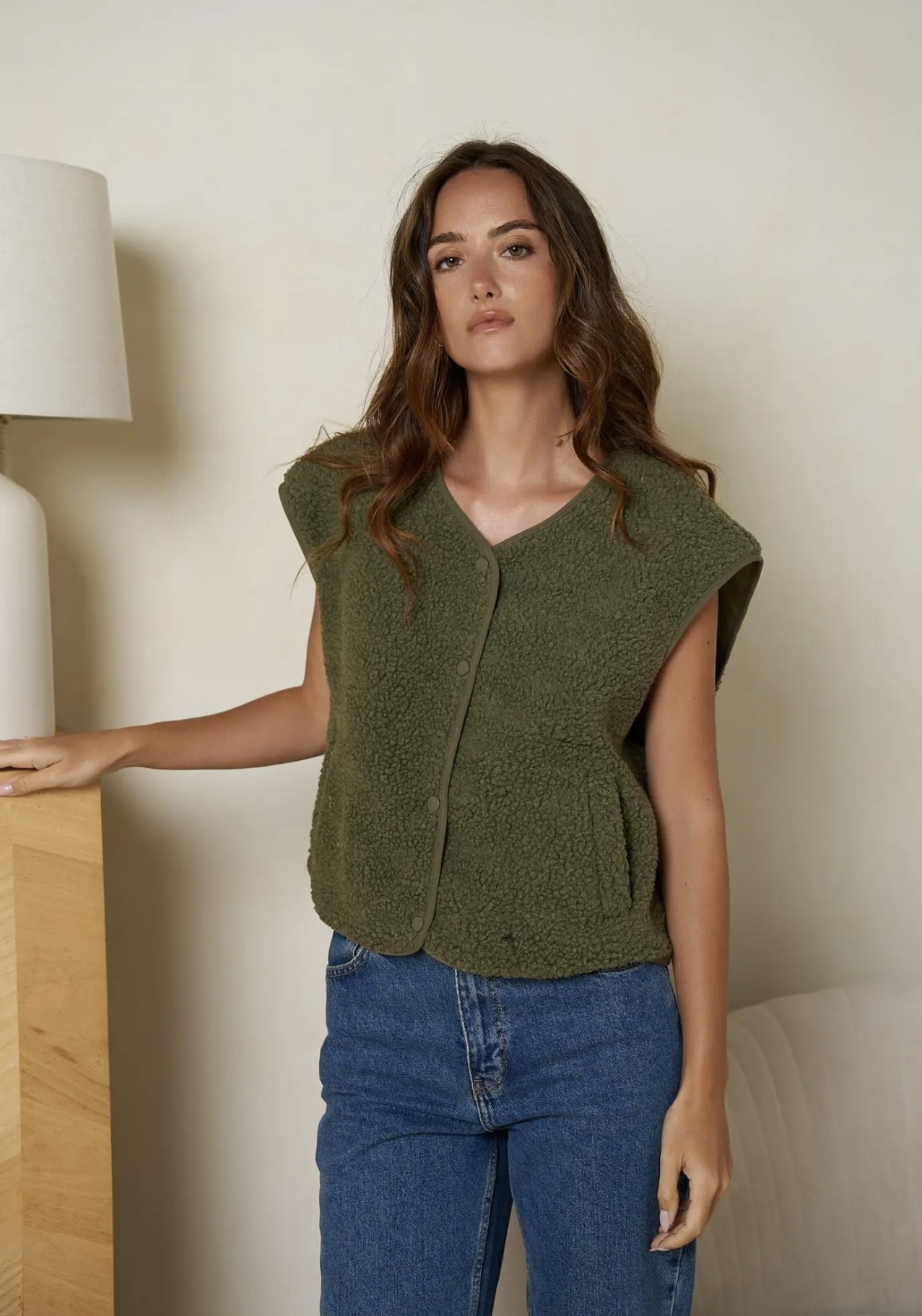 - Gilet effet moumoute kaki