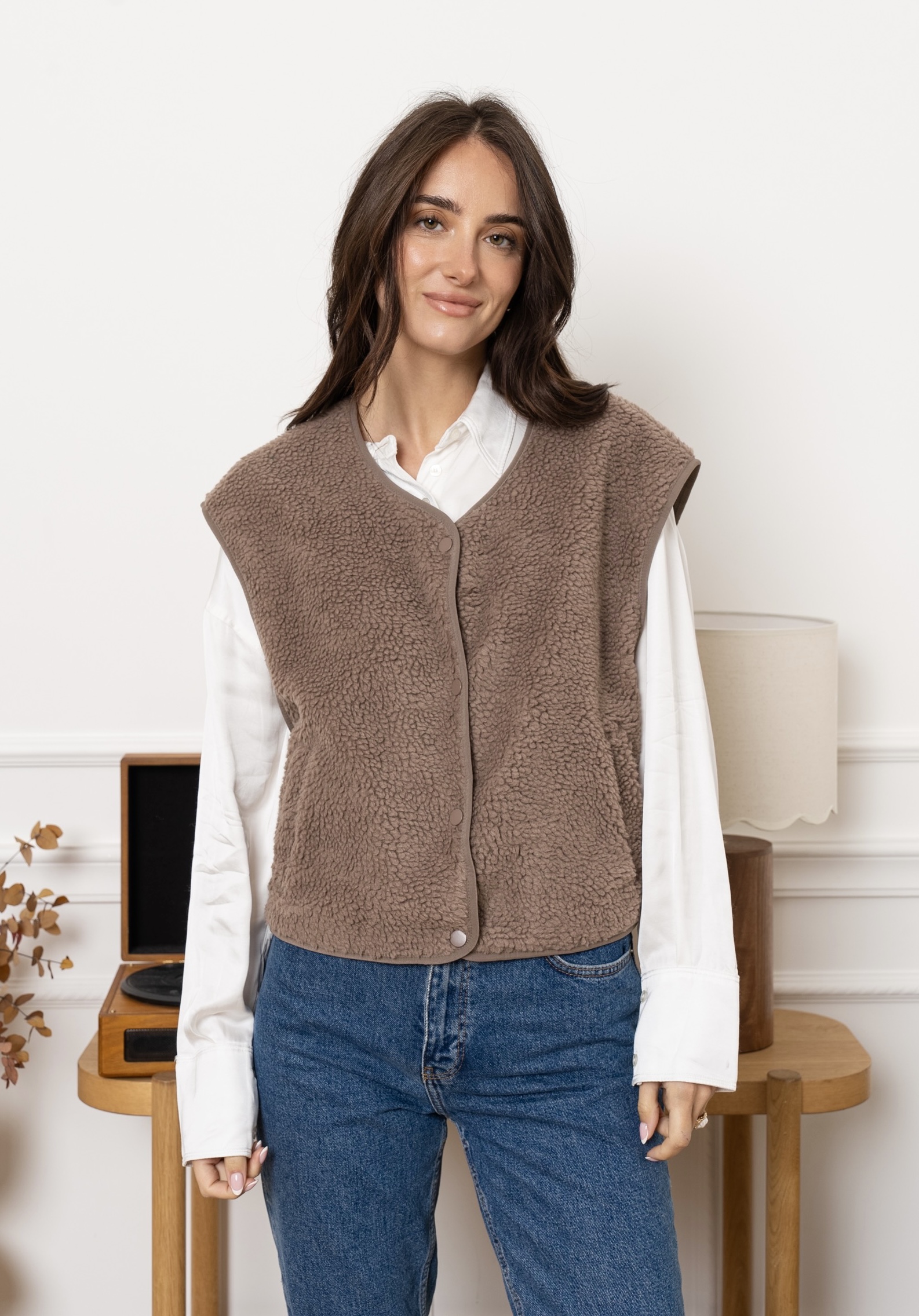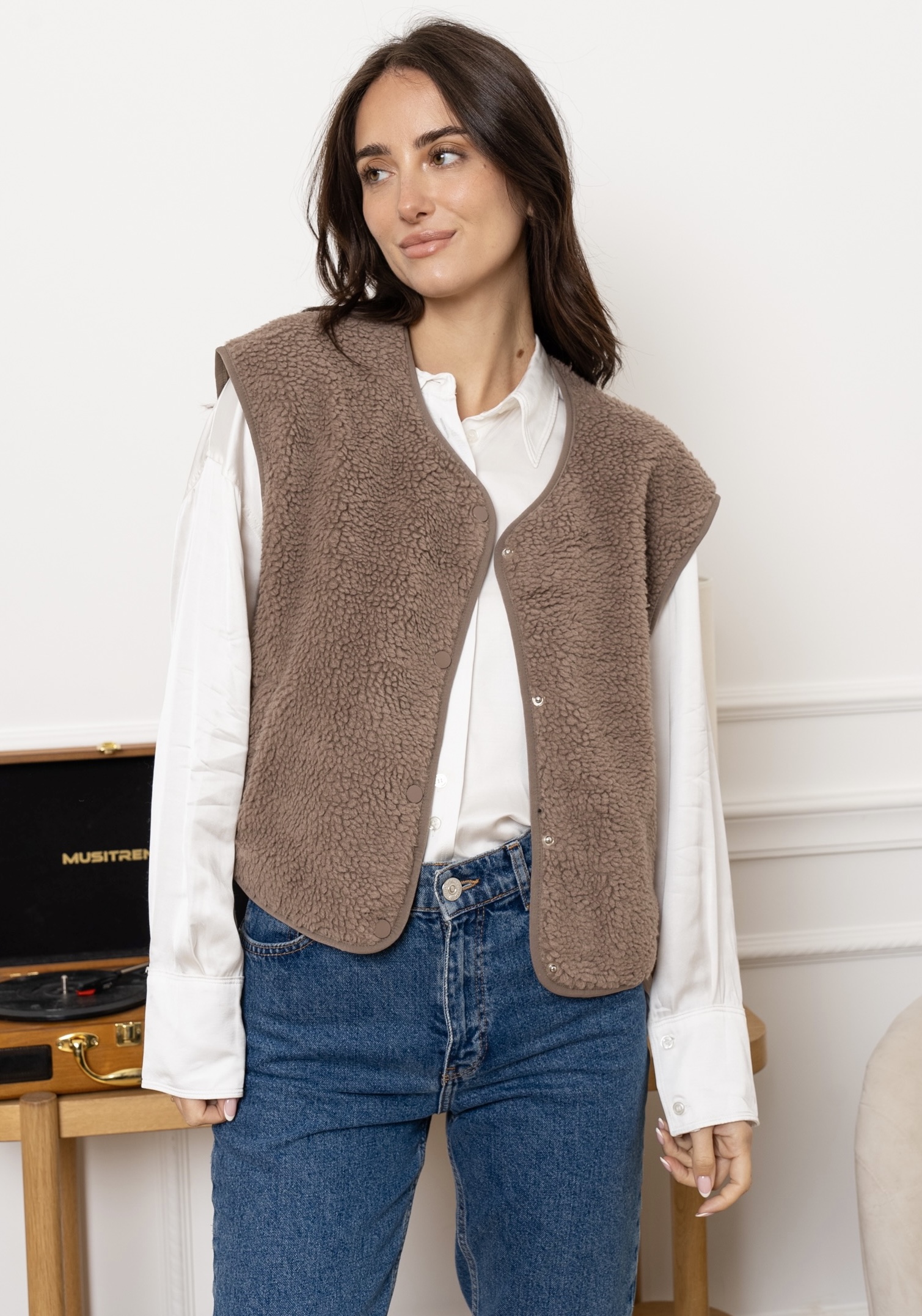 - Gilet effet moumoute taupe