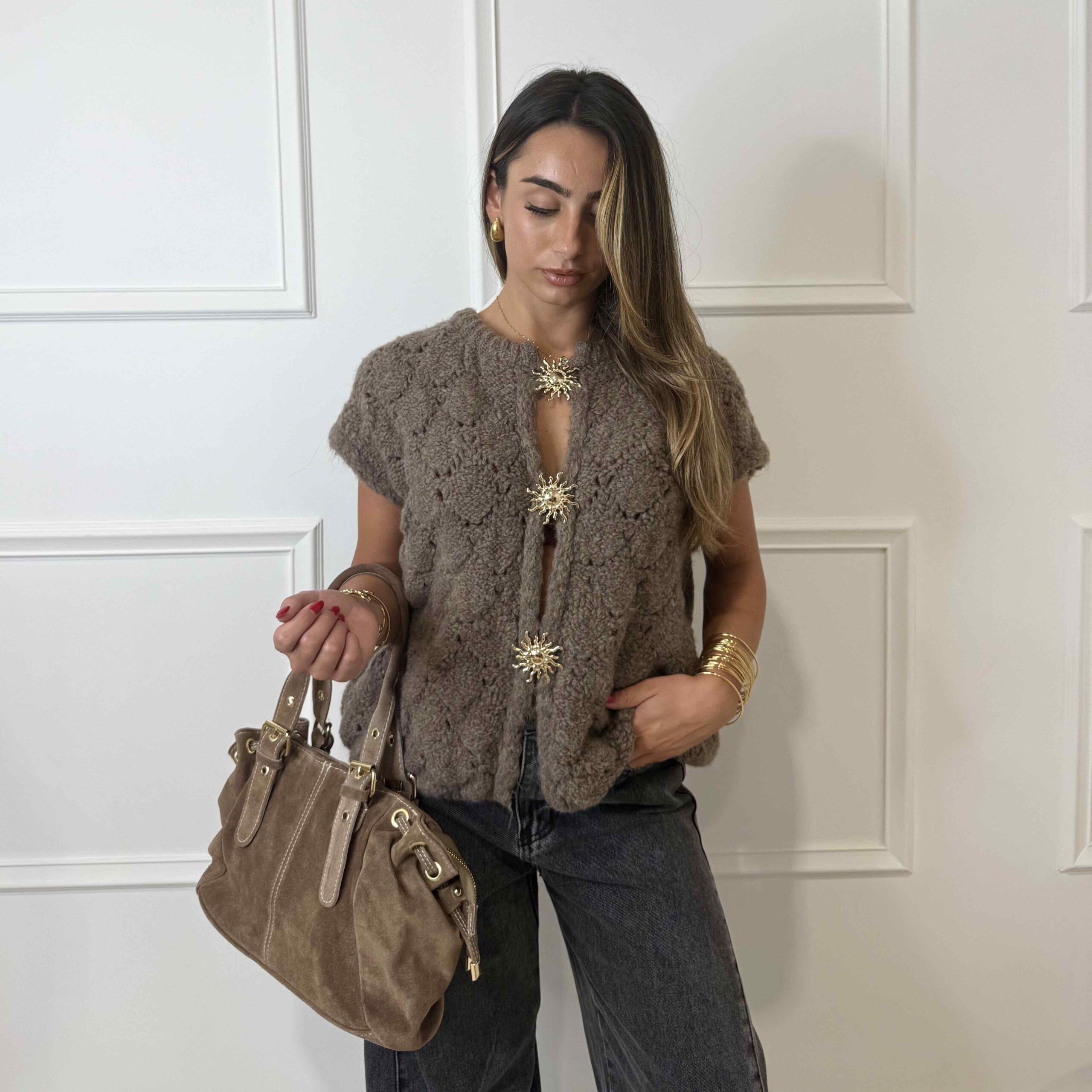 Craquez sous le charme de ce petit gilet SUN avec ses détails de soleils dorés sur le devant vous n’aurez plus jamais froid pendant les saisons estivales !
