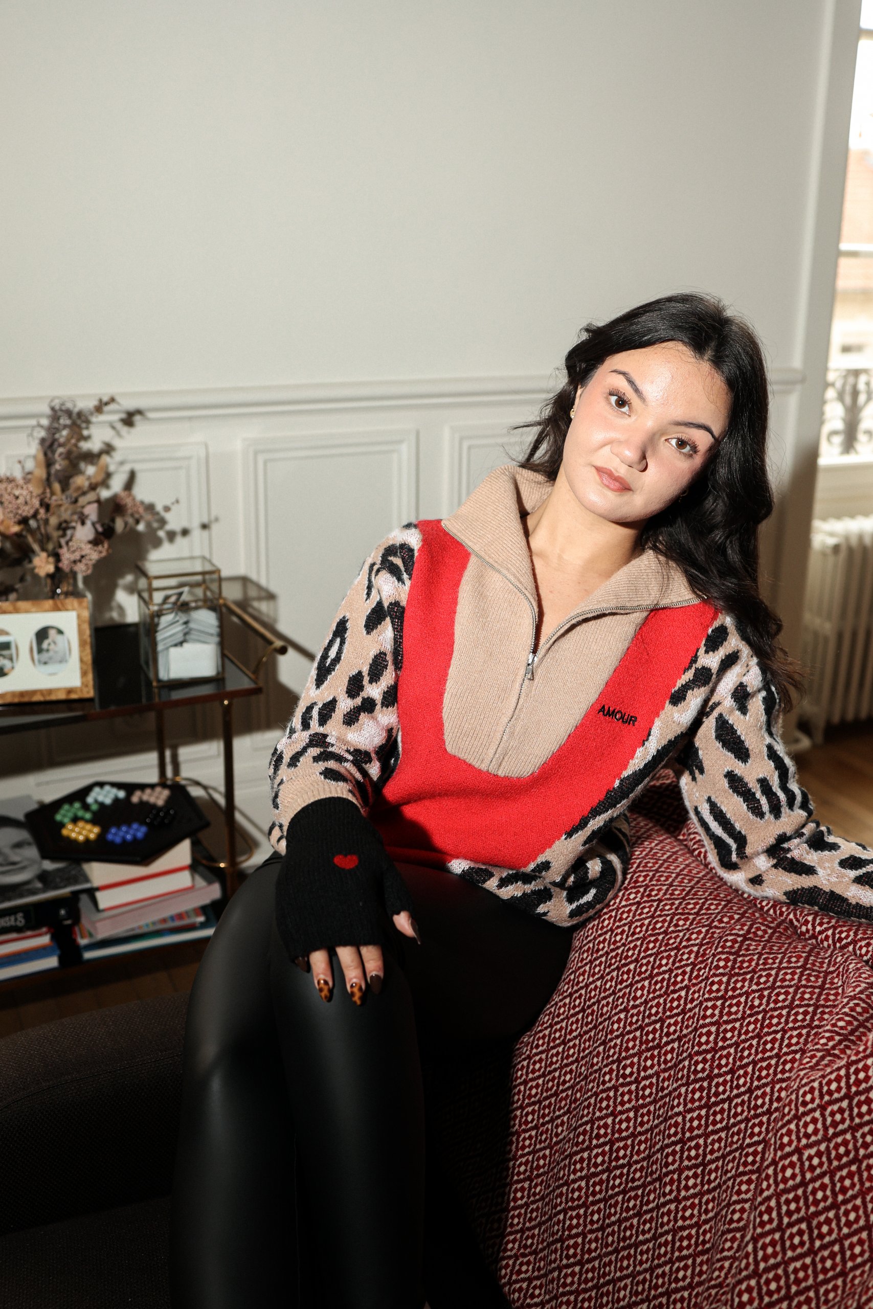 Je vous présente la très grosse maille bien chaude à encolure camionneur brodée sur le coeur « amour ». De quoi vous tenir bien chaud tout l’hiver en évitant même les écharpes !