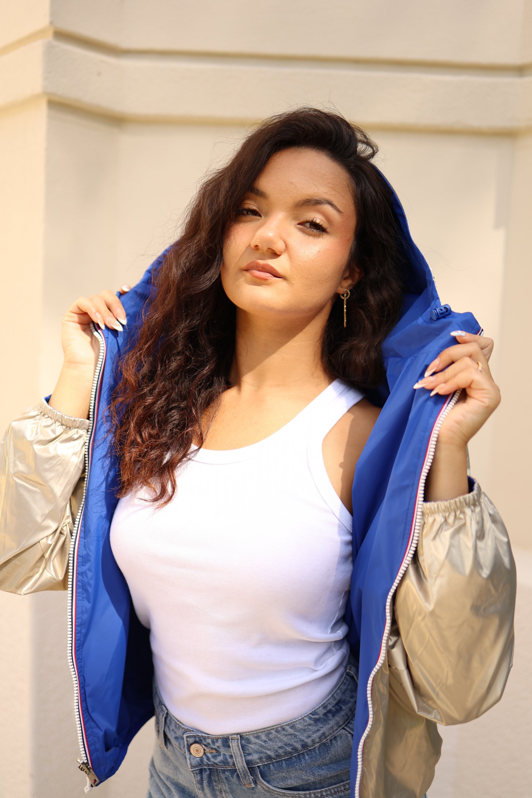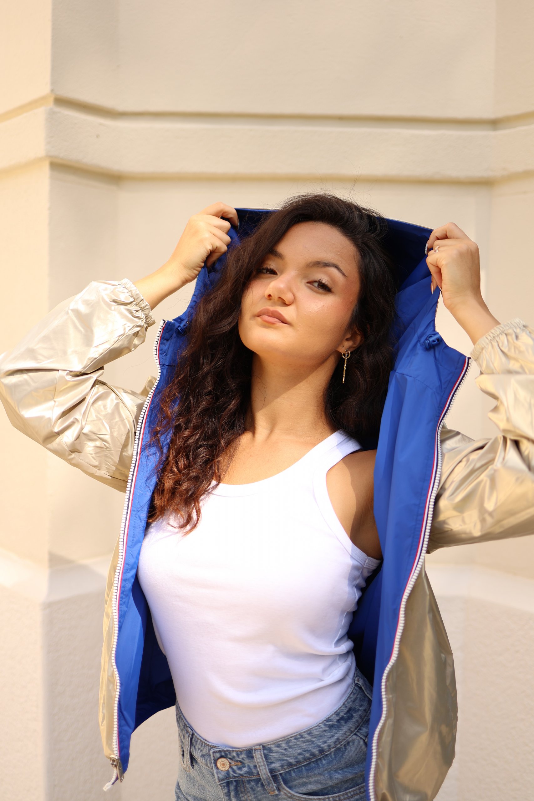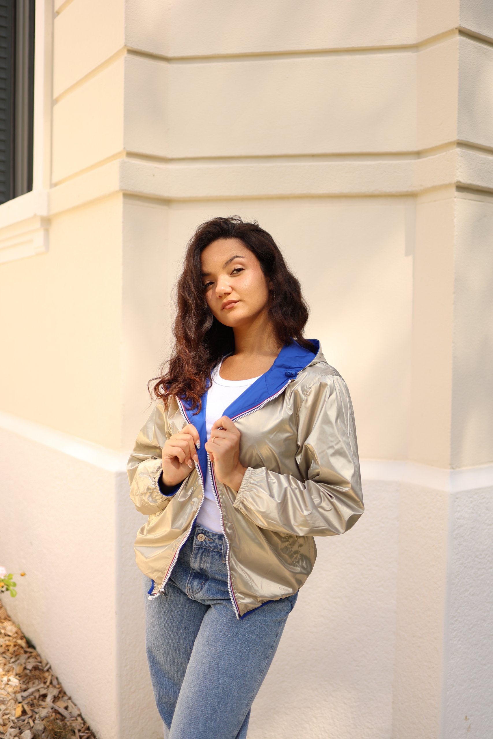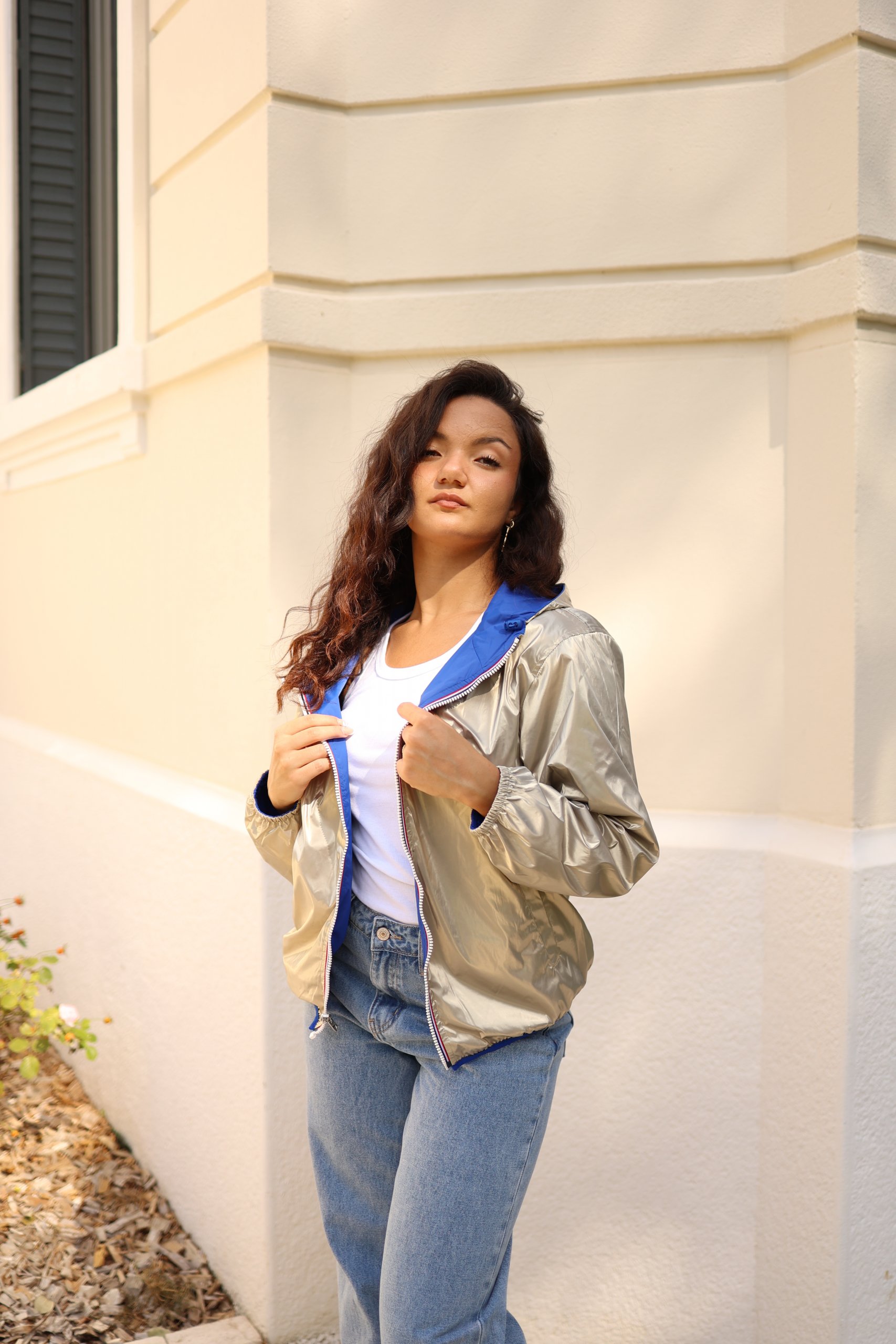 Un côté coloré plutôt classique (kaki, bleu roi et noir) et un côté flamboyant doré ou argenté pour les journées plus fun. Un joli rouge à lèvres et zou : qui a dit qu’un coupe-vent anti-pluie était anti-sex au possible ? On adorera porter son coupe-vent toute la saison avec tous vos outfits, même les plus habillés, on a dit : on ne négocie plus entre le style et le réconfort. On peut désormais avoir les 2 🙂