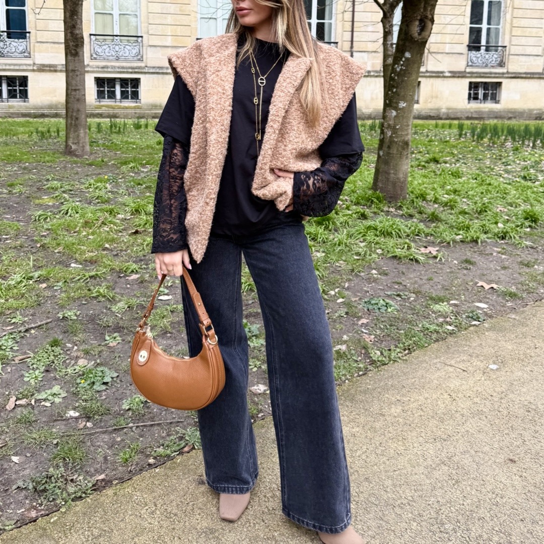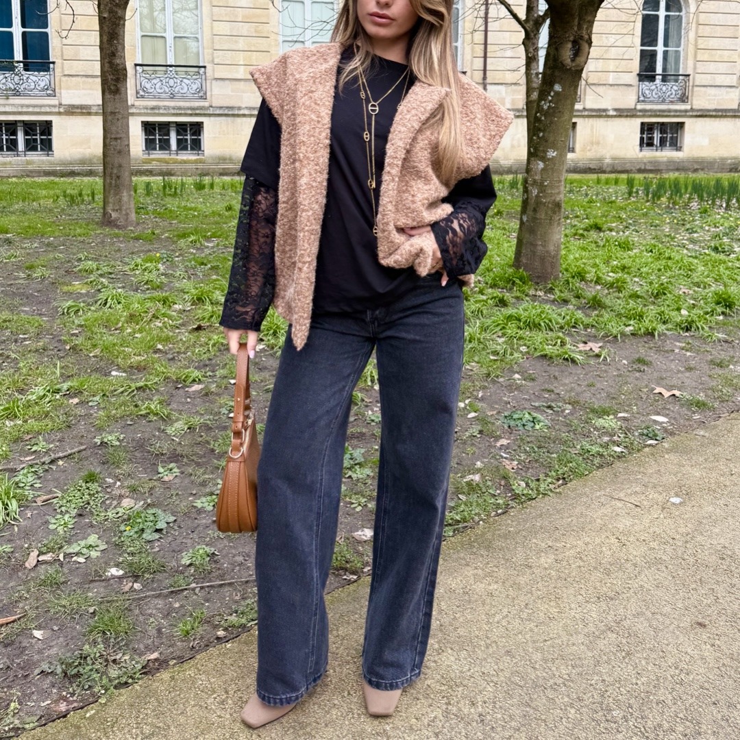 Jean noir straight wide, coupe droite et taille haute. Simple et élégant, ce jean apportera une touche tendance tout en mettant en valeur vos formes et s’adaptera à tous vos looks.