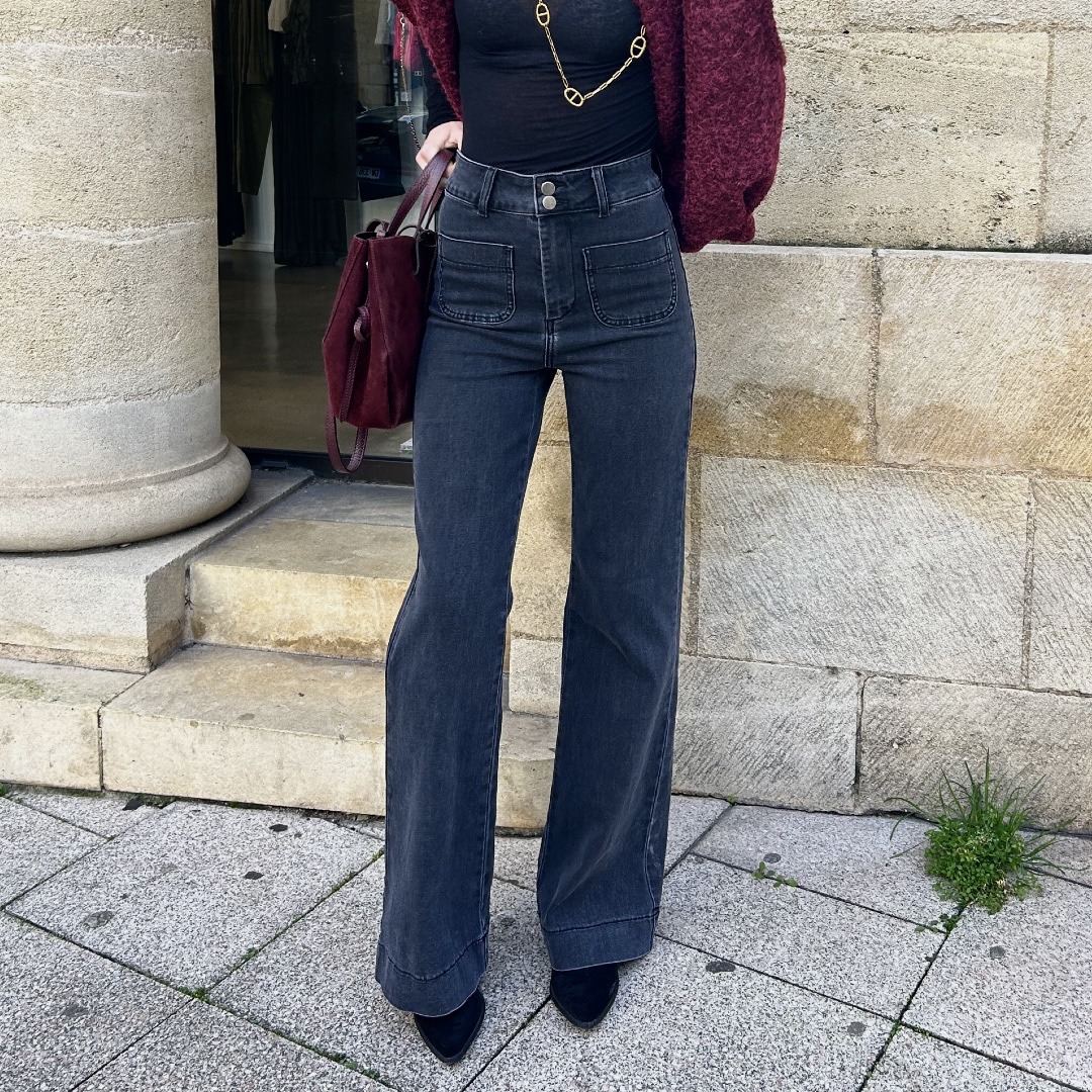 Ce jean noir flare offre une coupe élégante et moderne avec ses jambes évasées, créant un look audacieux et intemporel. Confortable et tendance, il se distingue par sa teinte noire intense, parfaite pour toutes les occasions.