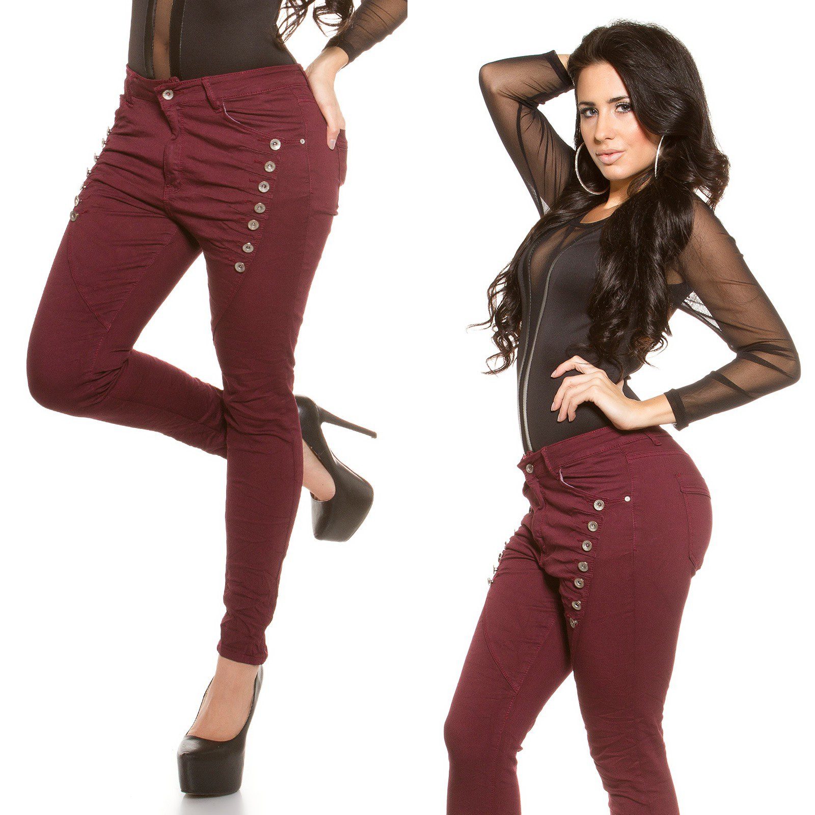 Jean girly et sexy filles rondes AMBRE couleur bordeaux