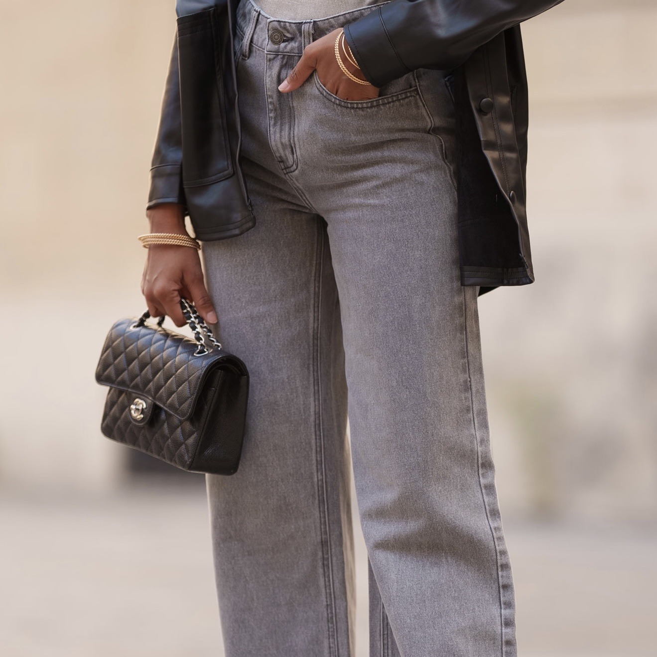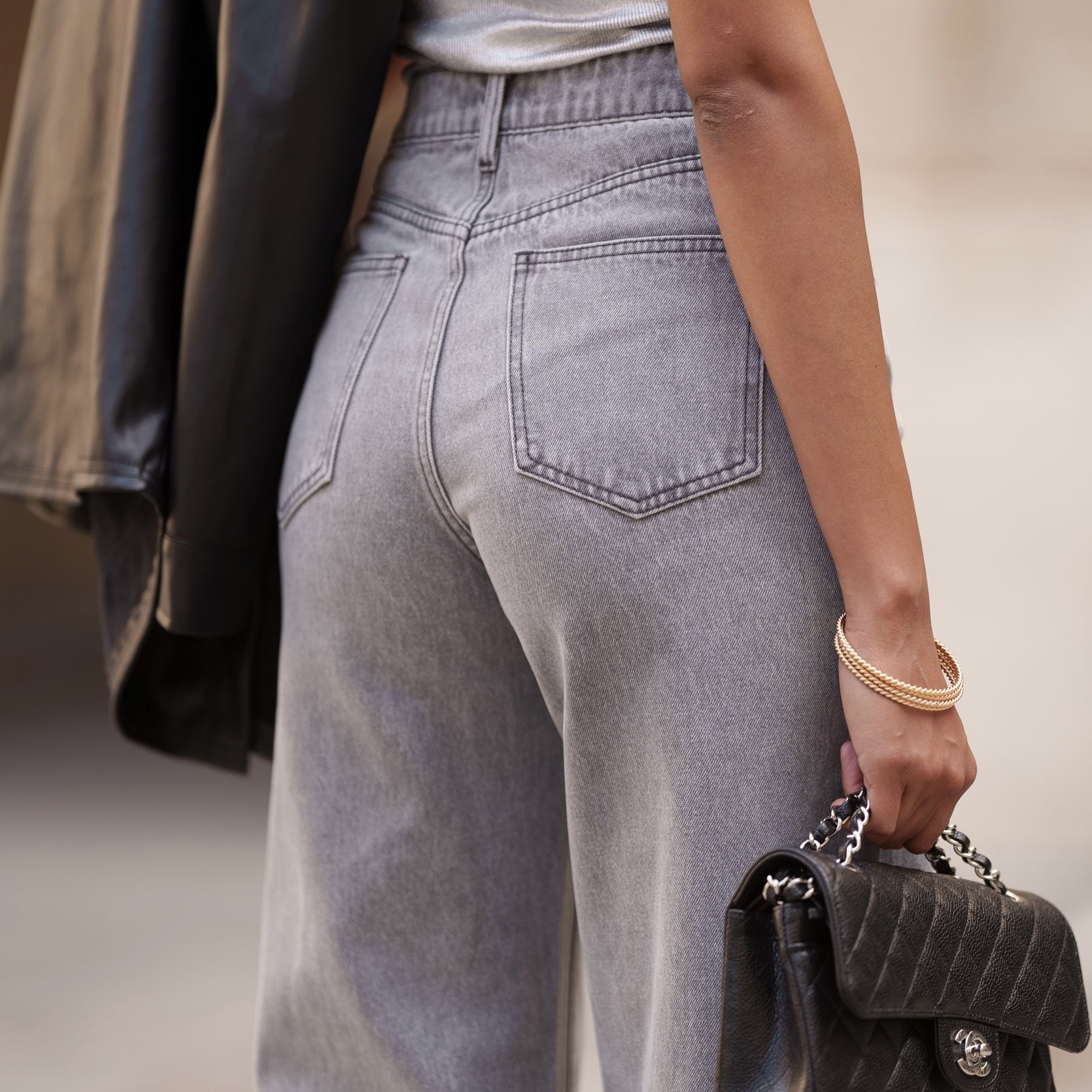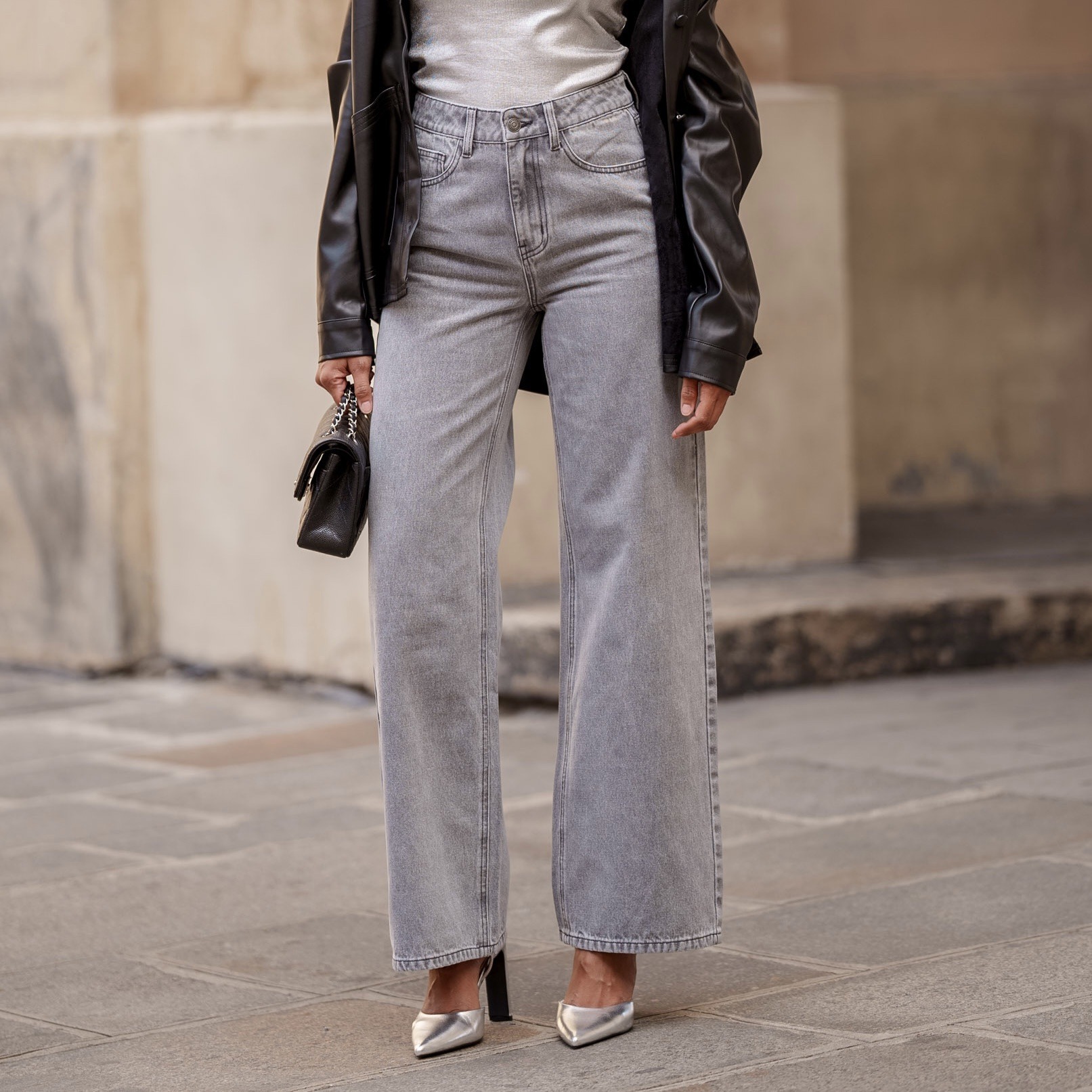 Ce jean gris wide offre une coupe ample et moderne, idéale pour un look décontracté et stylé. Sa teinte grise polyvalente le rend facile à associer, tout en apportant une touche d’originalité à vos tenues.