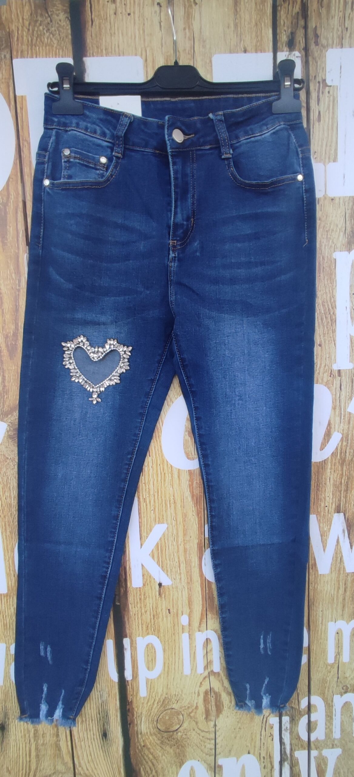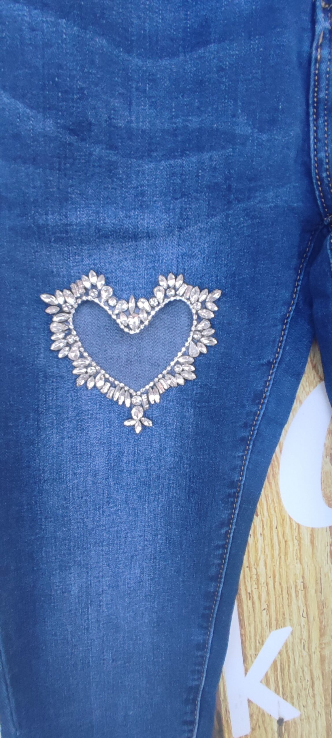 Jeans bleu coeur stretch strass