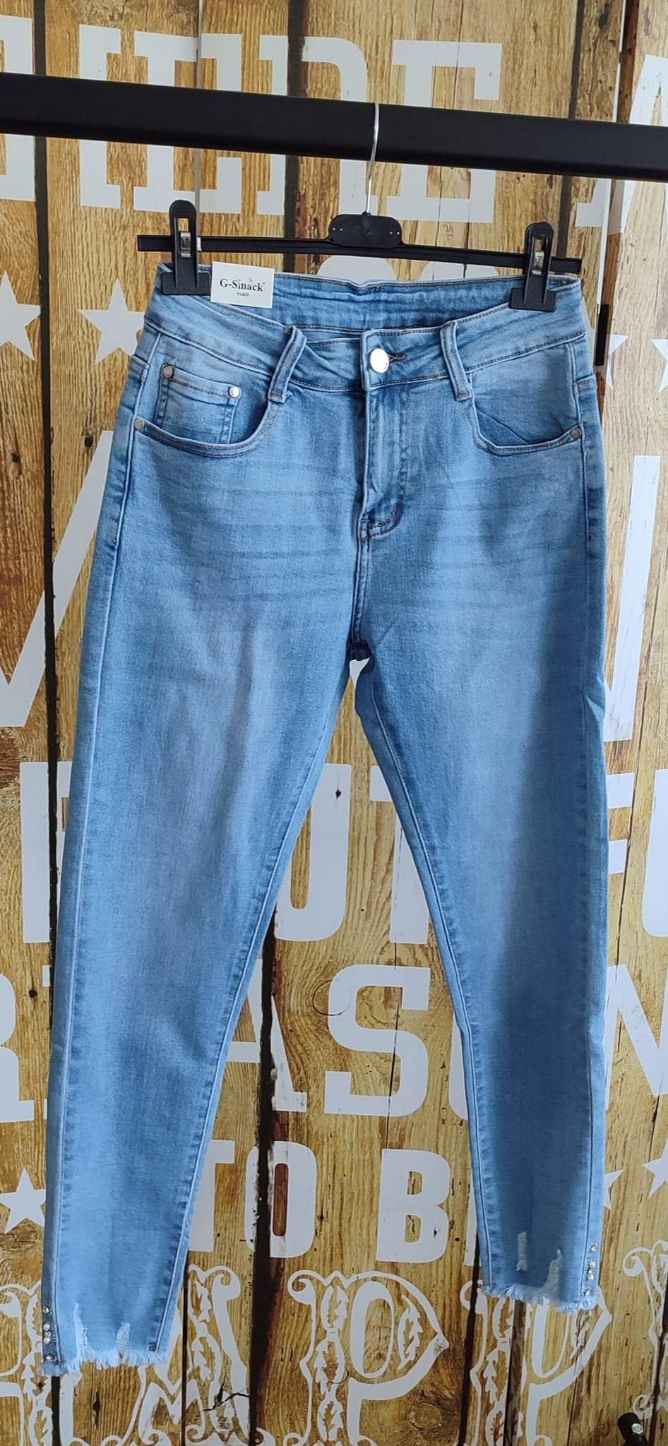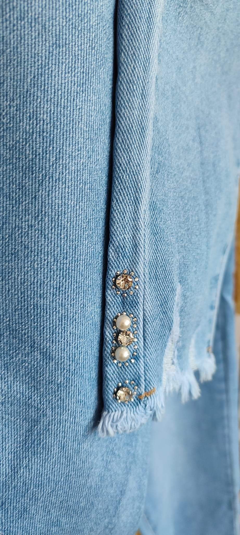 Jeans bleu avec perles et strass