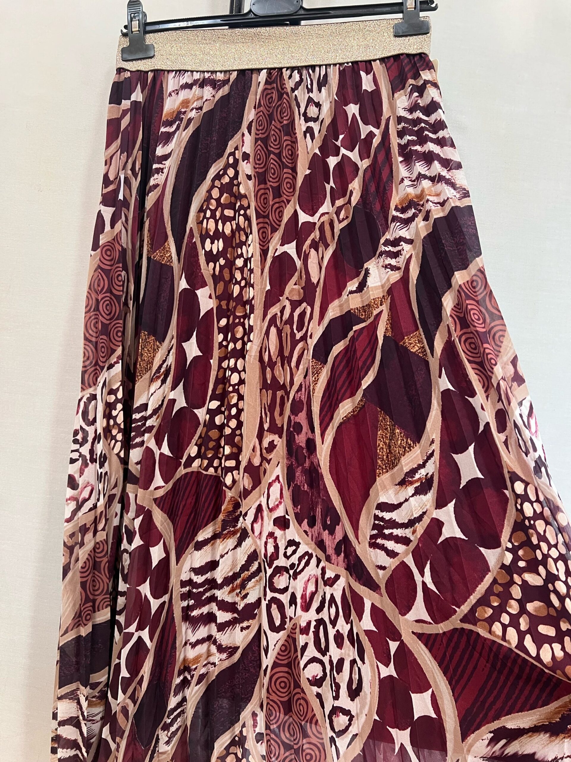 Jupe plissée élastique motifs bordeaux