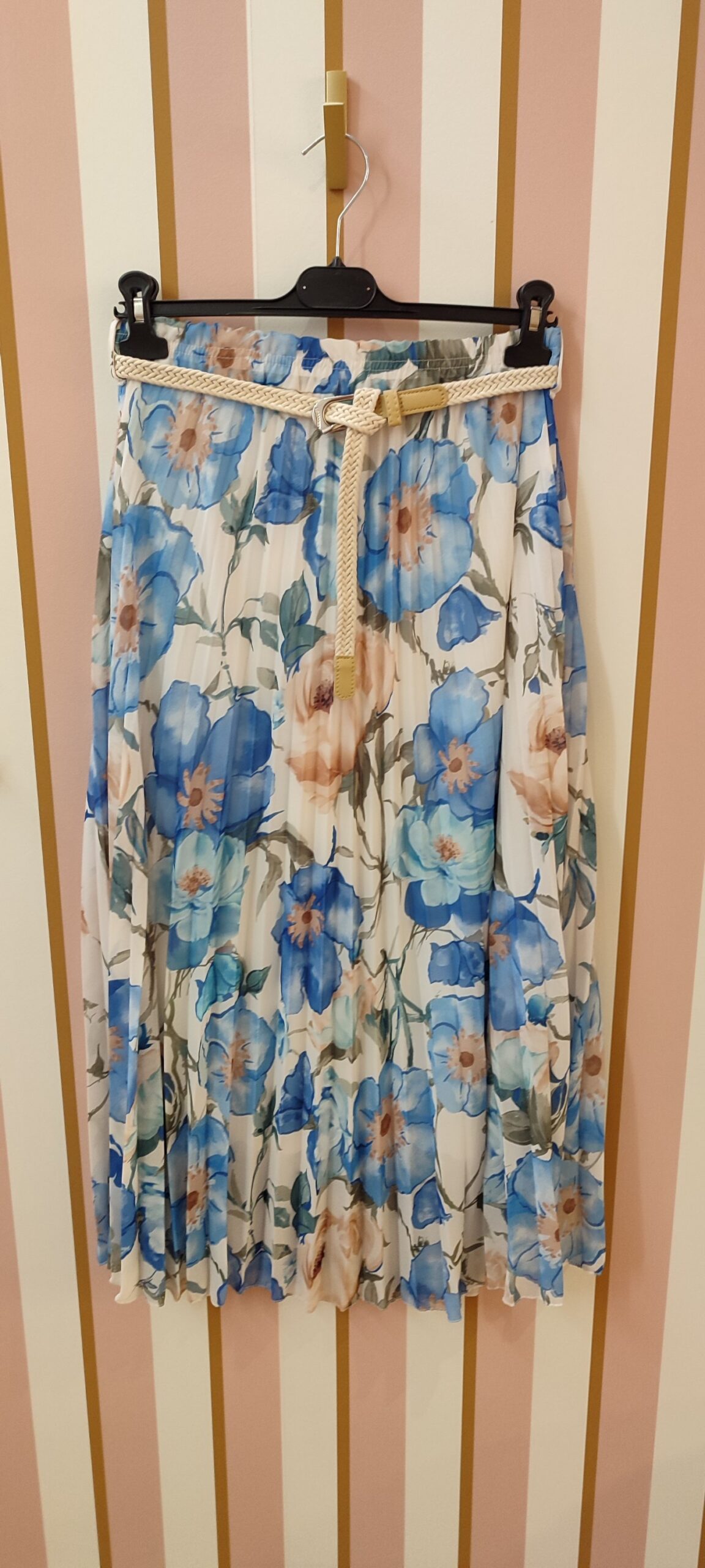 Jupe plissée fleurs avec ceinture beige