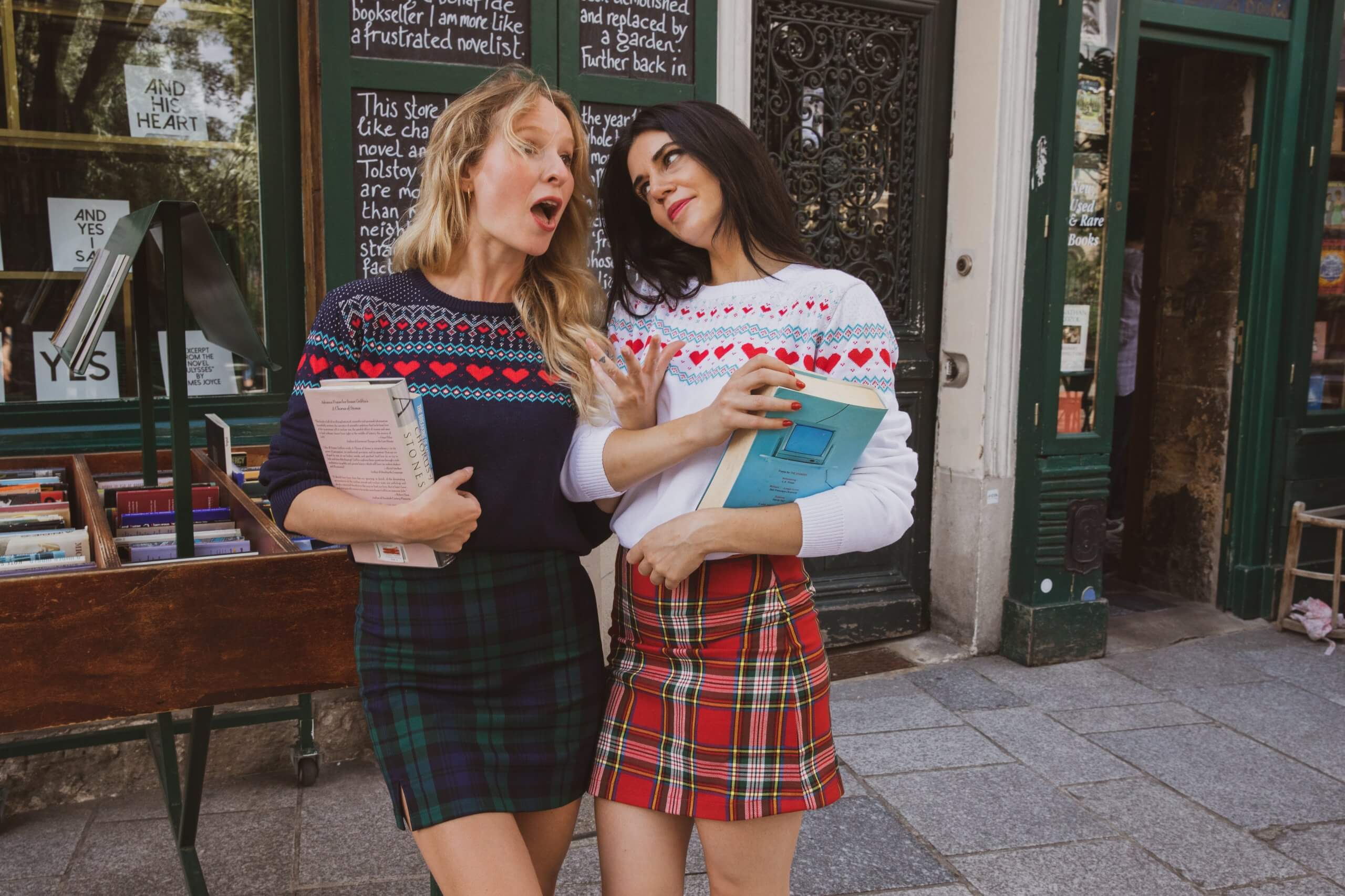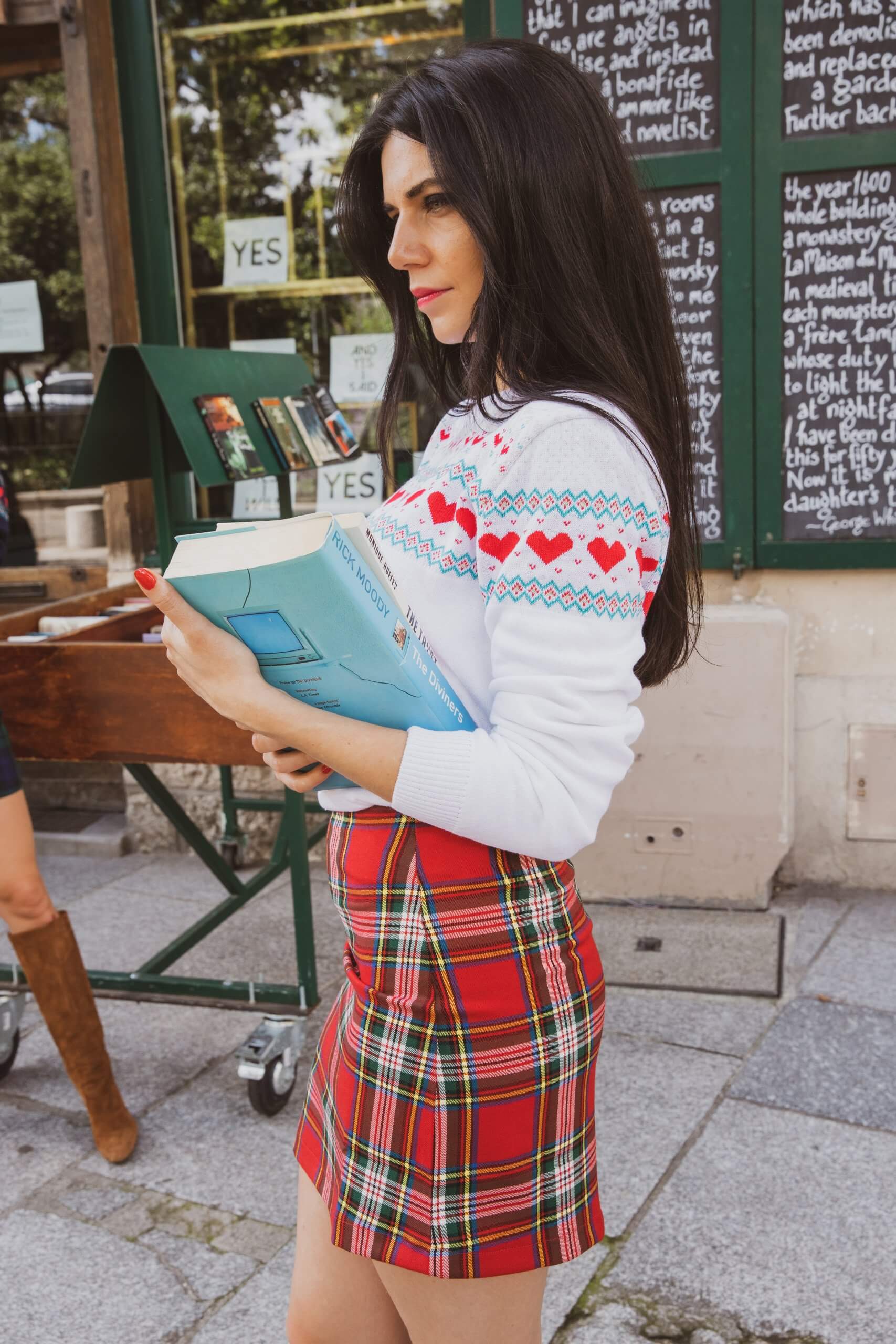 Elle se porte évidemment avec notre petit pull emblématique de rentrée style vintage très Oxfordien disponible juste ICI mais aussi avec votre col roulé noir, rouge, blanc, peu importe ; une chemise un peu loose comme la chemise boyfriend de Lulu ou même une colorée (rose ? bleu ciel ?), votre petit pull préféré près du corps, votre t-shirt rock loose adoré, votre veste boyfriend ultra dégaine comme Kate Moss…. et évidemment des collants quels que soient les deniers, vos babies, des bottes, des souliers plats ou les jambes nues pour les plus affranchies ! En bref, au-delà d’être ultra emblématique, ce look de rentrée est carrément BOMBASTIQUE !