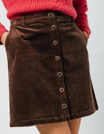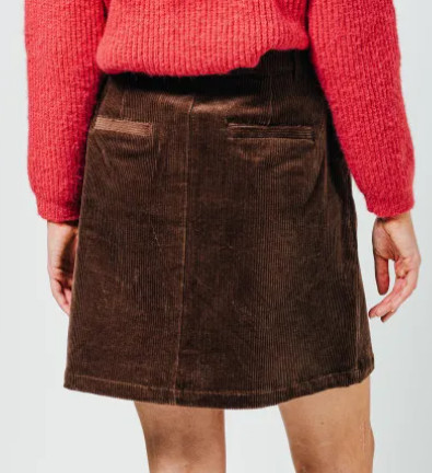 Jupe courte en velours côtelé entièrement boutonnée. Boutons velours. Deux poches avant. 98% coton 2% élasthanne Lavage machine 30°