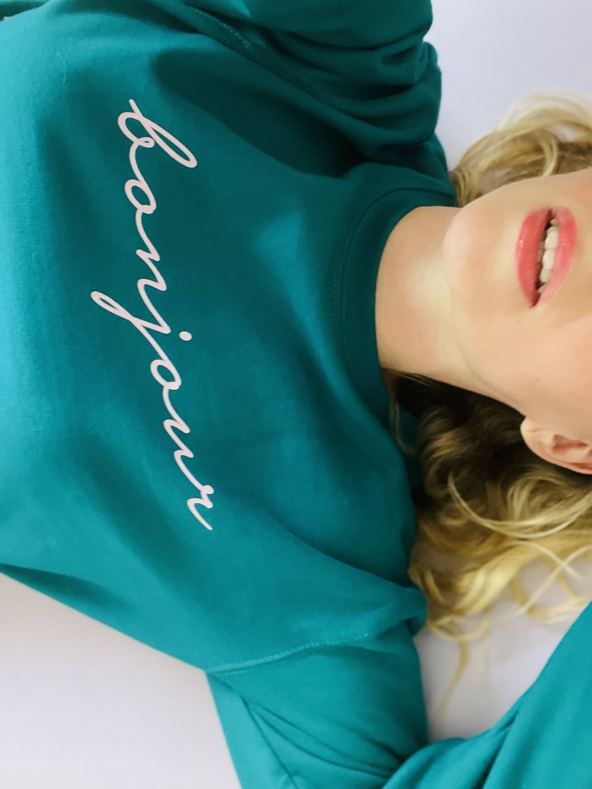 Sweat âbonjourâ : un mot tendre sur un sweat doux, dans un monde en manque de tendresse.