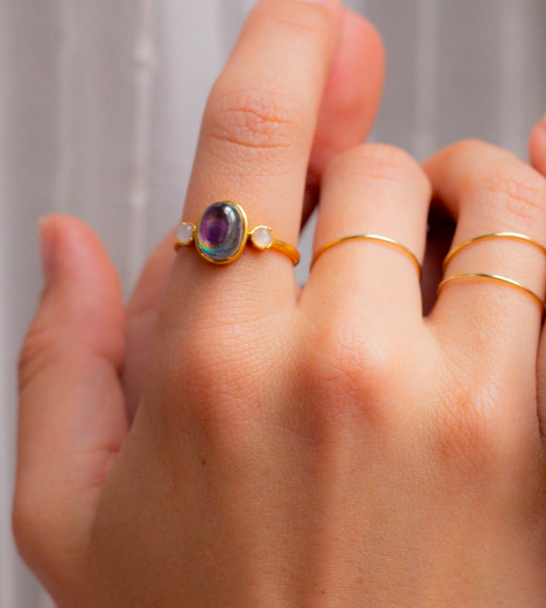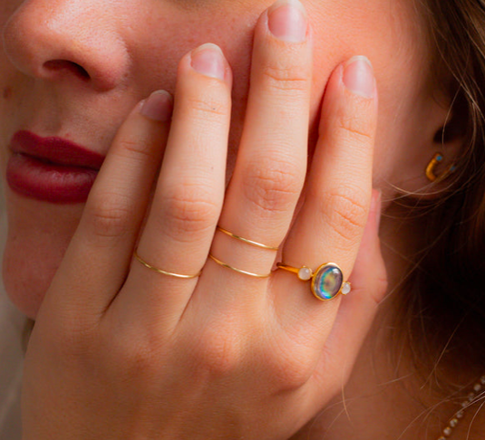 3 bagues classiques, fines et martelées à la main que vous pourrez choisir de porter seules ou en accumulation avec d’autres bagues comme sur les photos par exemple avec la bague d’humeur « classique » ou la « Vada » pour une allure trop stylée. On adore les porter au même doigt toutes les 3 ou à différents doigts : annulaire, pouce, majeur, index. Les possibilités sont presqu’infinies et vous n’aurez plus qu’à vous faire plaisir !