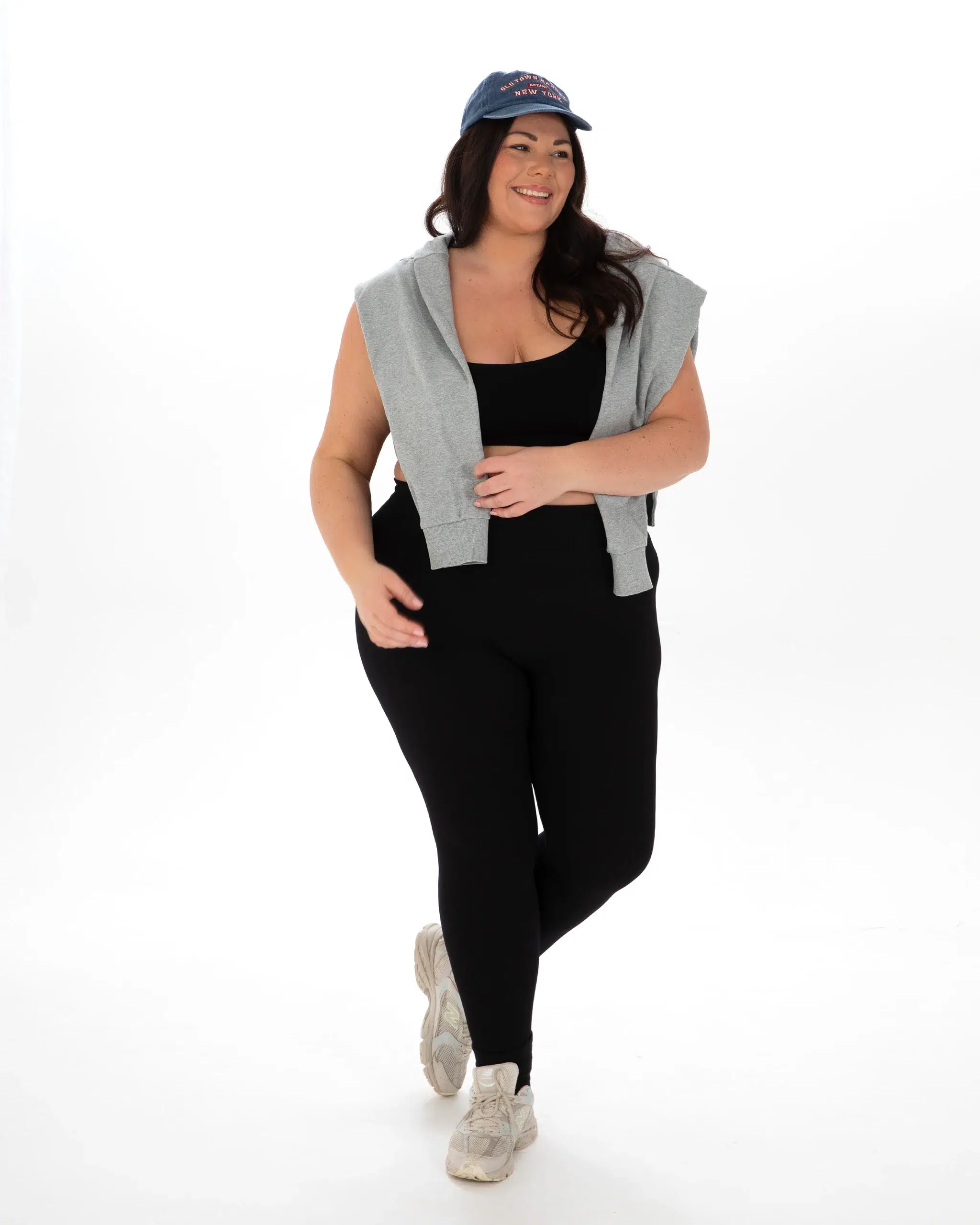 - Nos leggings bénéficient également de finitions sans coutures : le bas du pantalon est doté d’un ourlet roulé avec surjet et la taille a été redessinée pour une coupe plus haute.