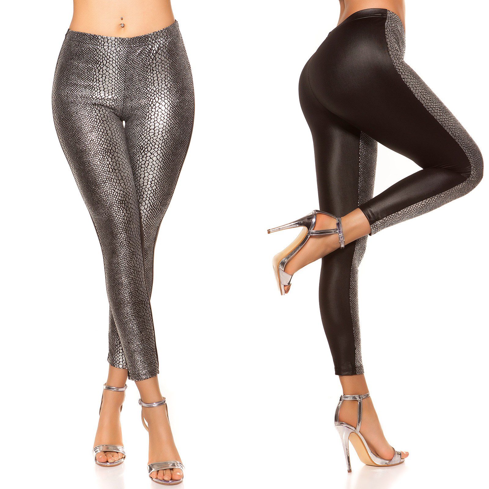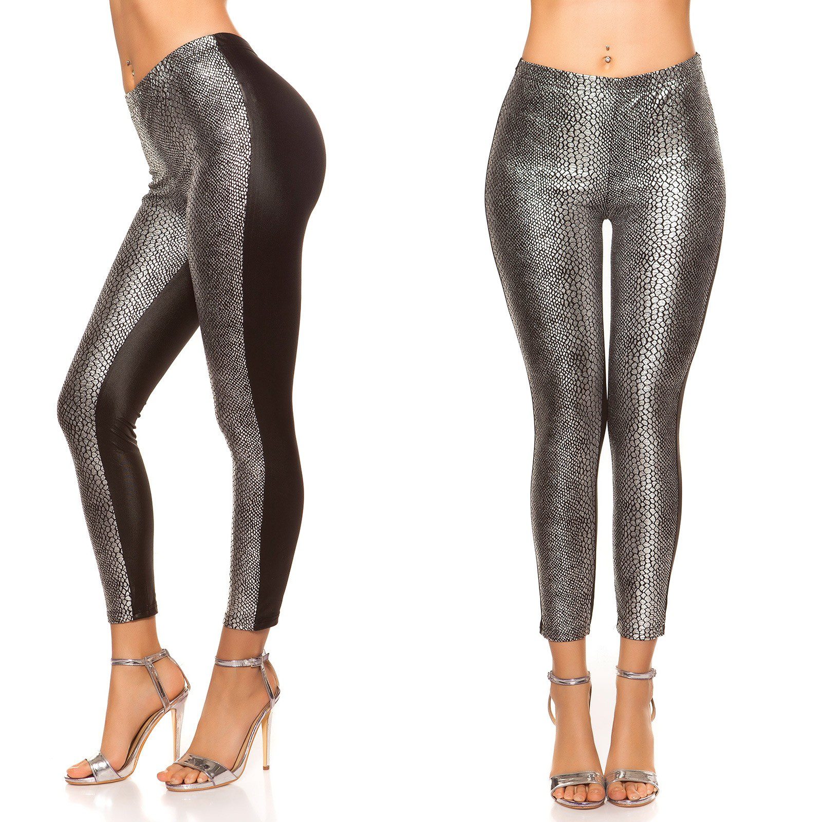 Leggings sexy fashion Carla imprimé Serpend argent/noir