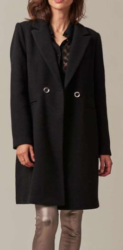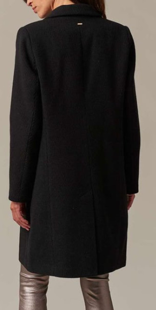 Manteau chaud, aspect chevron, coupe droite. Fermeture bouton. Deux poches avant.