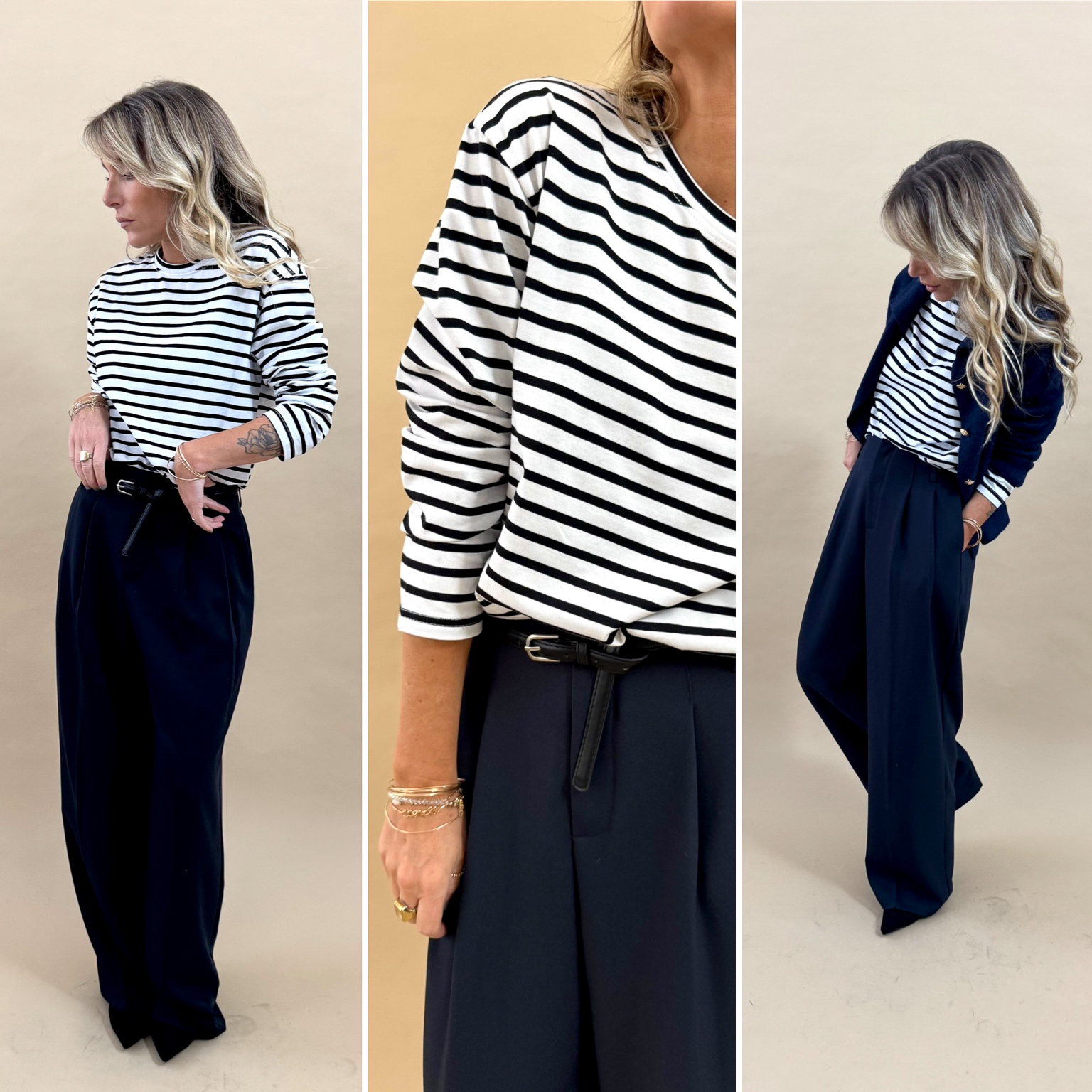 La marinière noire et blanche à manches longues en coton, sa coupe légèrement ample et son col rond!