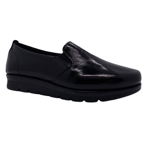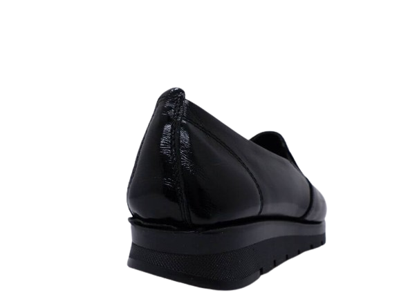 Mocassin confort cuir femme talon compensé élastiqué côtés ARIMA coloris vernis noir