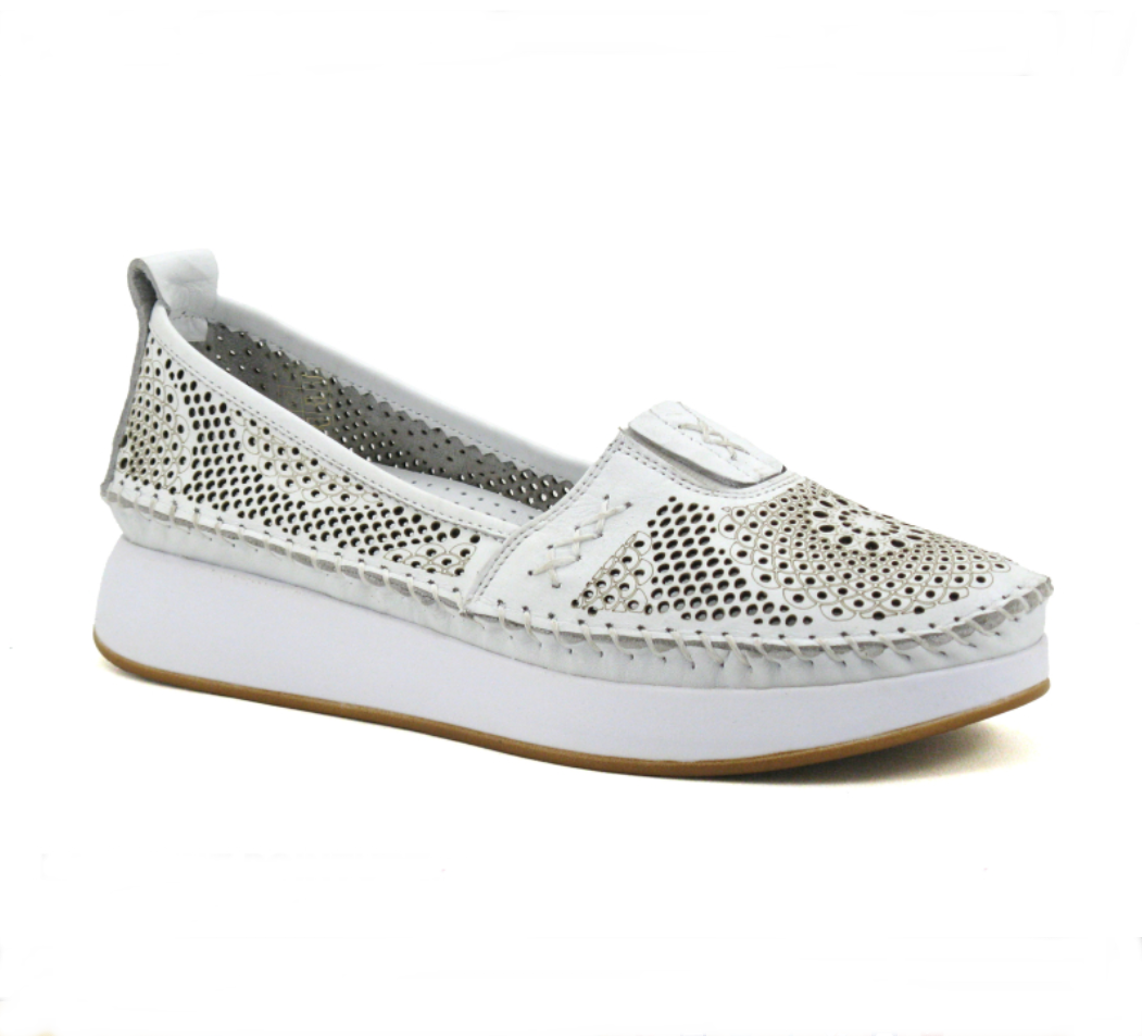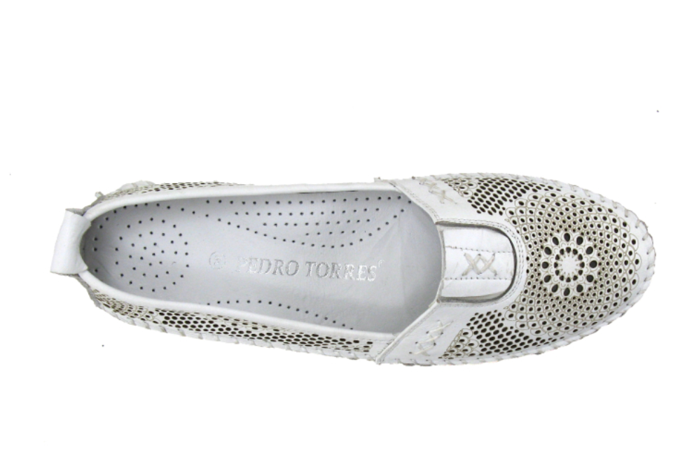 Mocassin Cuir Femme Semelle plateau compensée Voûte plantaire Cousu main PEDRO TORRES Coloris blanc