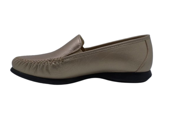 Mocassin cuir souple Femme Doublure textile Talon plat Cousu main BOISSY RONDO coloris doré ou argenté