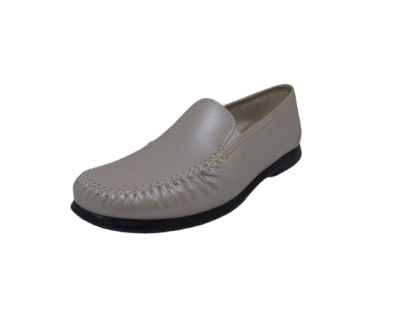 Ce mocassin femme de la marque française BOISSY est un modèle incontournable pour allier confort et élégance. Conçu en cuir souple de haute qualité, il est entièrement doublé en textile respirant pour garantir un bien-être optimal, même en cas de port prolongé. Grâce à son montage cousu main et à sa semelle ultra souple, ce loafer épouse parfaitement la forme du pied. Il procure une sensation de douceur comparable à celle d’un chausson. La semelle intérieur en cuir sur mousse est dotée d’une légère voûte plantaire. Les côtés élastiqués assurent un enfilage facile et un excellent maintien. Fabriqué en France, le soulier RONDO est idéal pour les personnes à la recherche de chaussures confortables, durables et élégantes. Le coloris bronze doré présente un plateau travaillé tandis que le modèle argenté est totalement lisse.