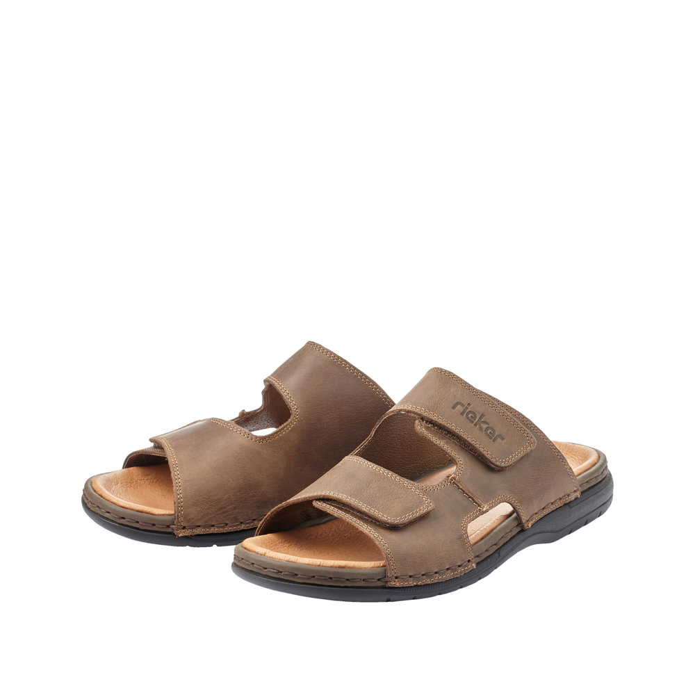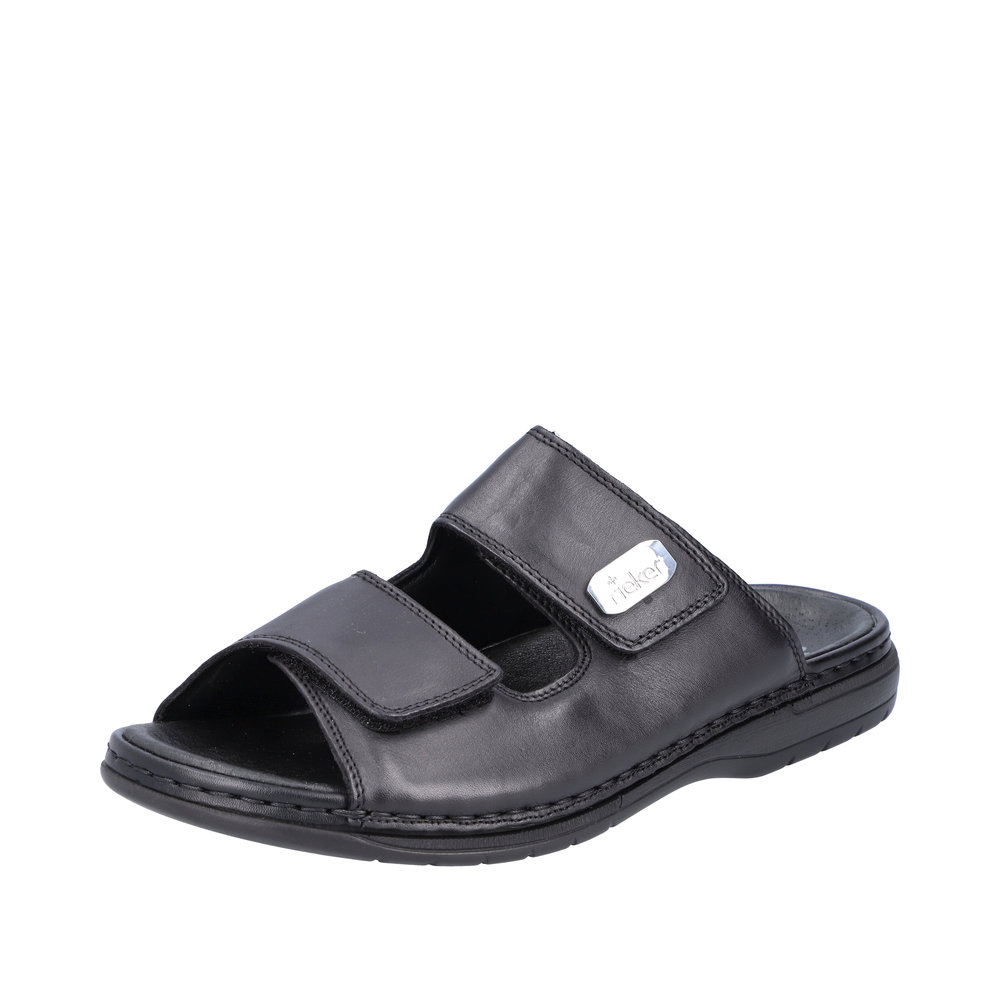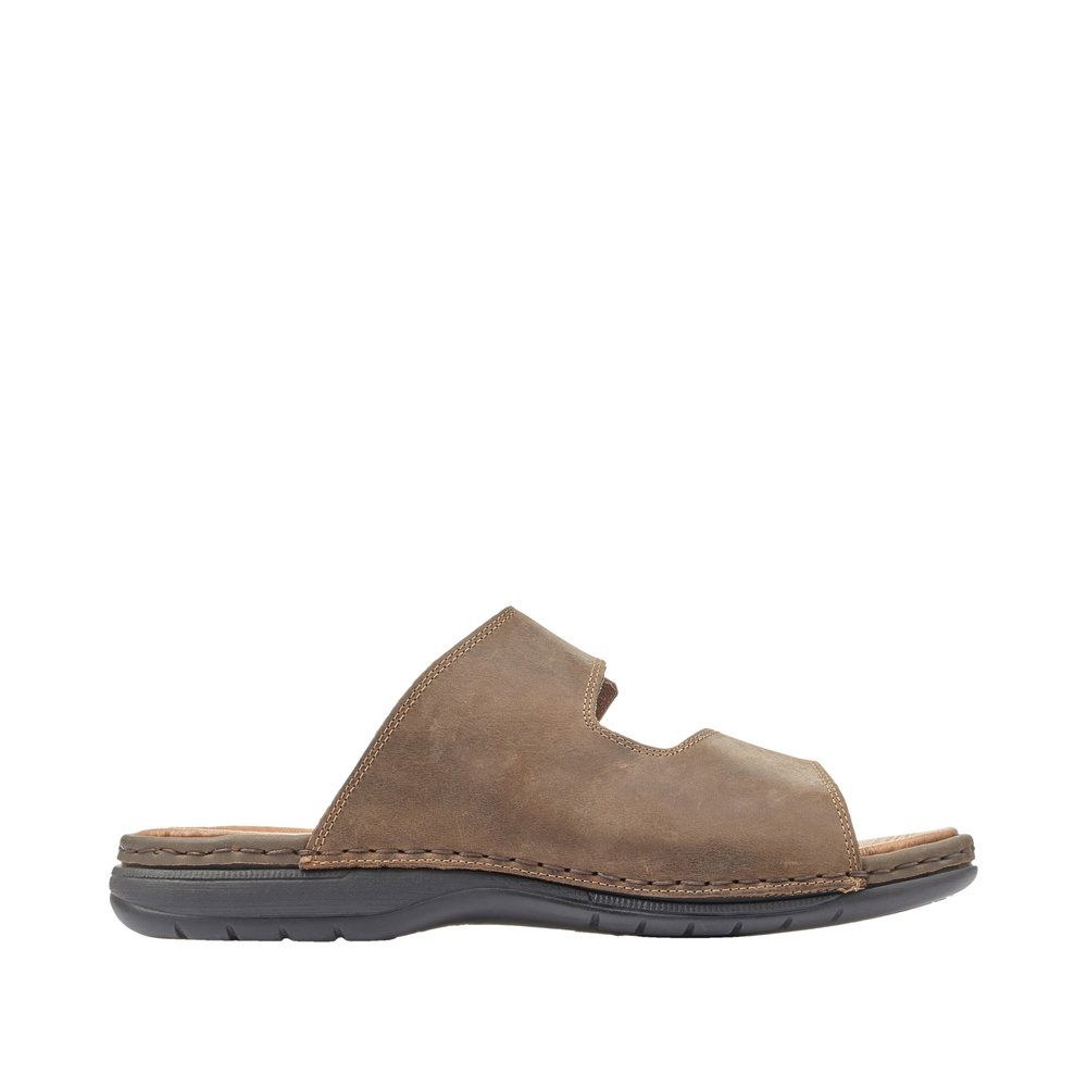 Mule ouverte homme Cuir souple Deux velcros Semelle ergonomique Chaussant confort RIEKER marron ou noir